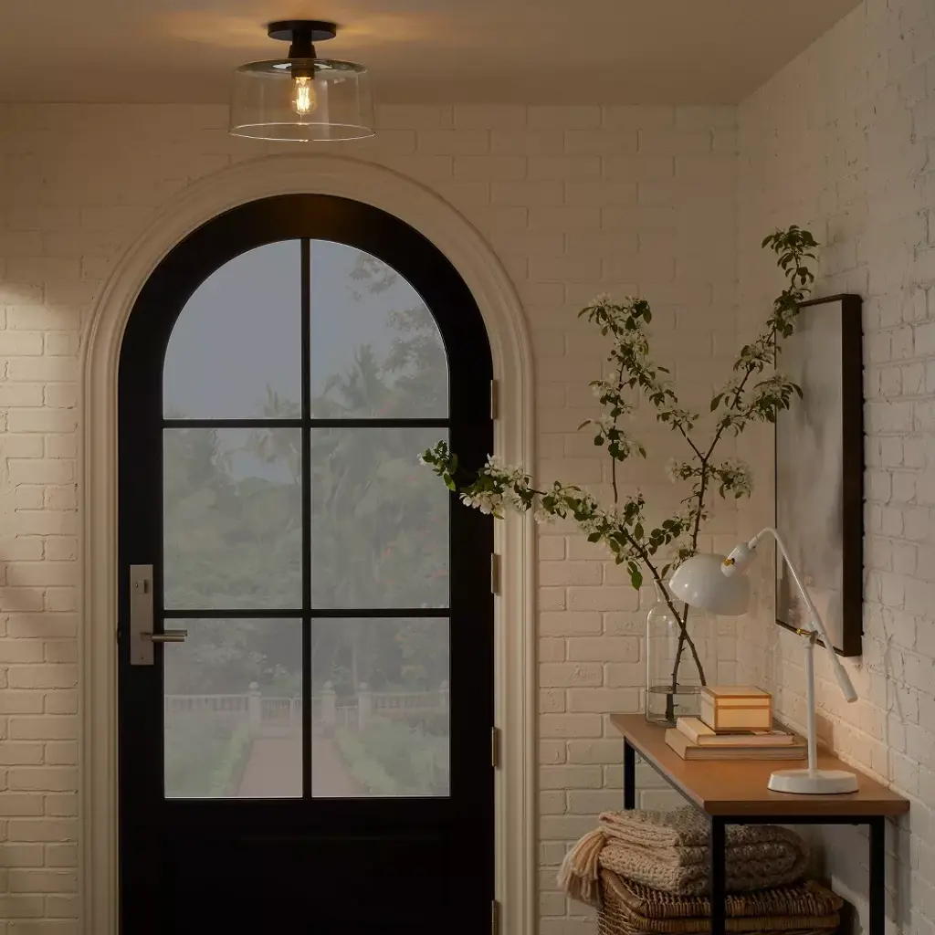 Bring contemporary, modern lighting to your wall space with this Glass Semi Flushmount Ceiling Light from Threshold™ designed with Studio McGee. This semi flush mount fixed light features a glass shade attached to a sleek metal base that mounts to the wall for a more interesting look. This sconce light brightens up your space whether you want to add a dash of glowing appeal to your welcoming entryway or illuminate your bedside for nightly reading.Meet Shea McGee, the designer and stylist behind the brand Studio McGee. Founded alongside her husband, Syd, the studio is known for Shea’s design of beautifully elevated spaces that encourage clients to surround themselves with the things and people they love. Now she’s partnering with Threshold to offer Studio McGee’s classic design in a new collection for inspired homes, everywhere.