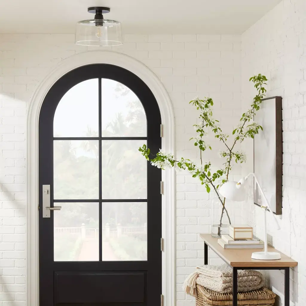 Glass Semi Flushmount Ceiling Light Black - Threshold™ Designed With Studio Mcgee: Etl Listed, Modern Decor, Metal Base
