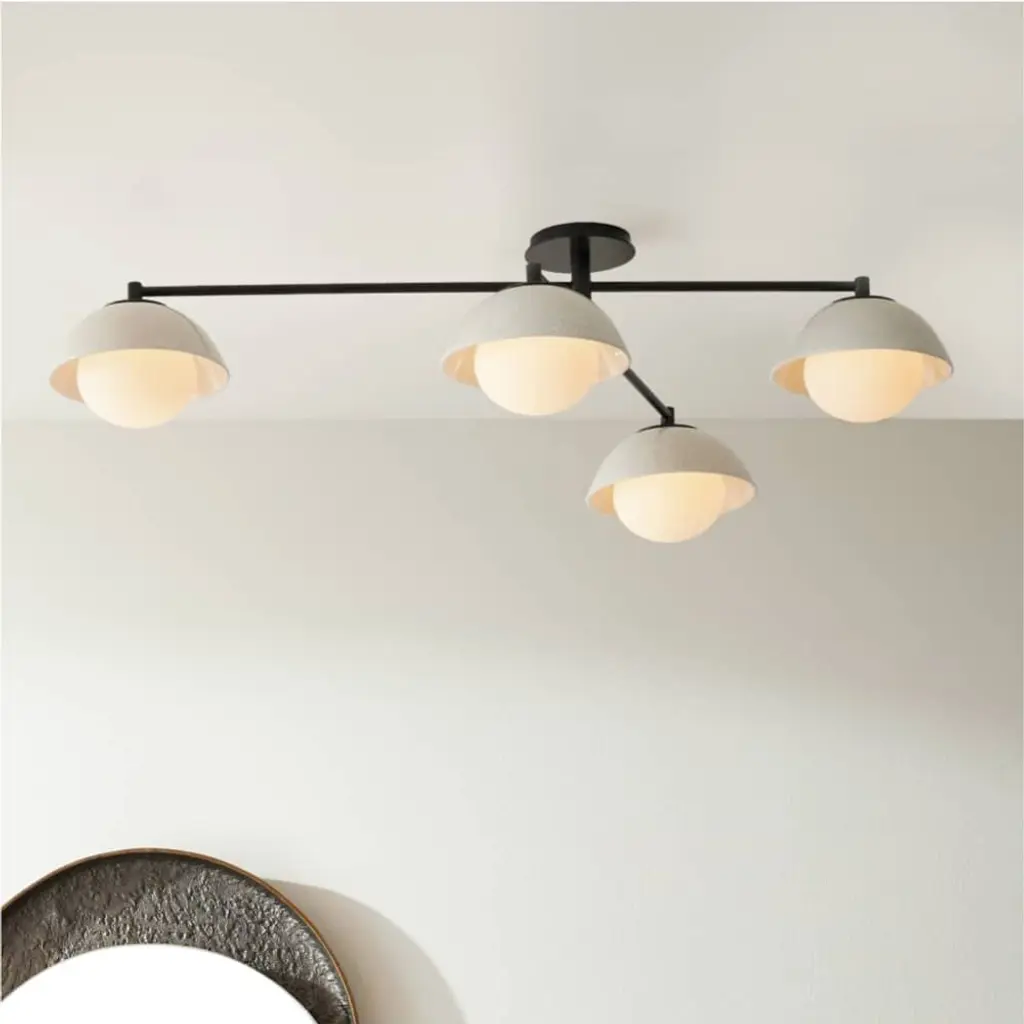 Glaze 4 Light 45 Inch Blackened Steel, Ivory Stained Crackle Multipoint Flush Mount Ceiling Light