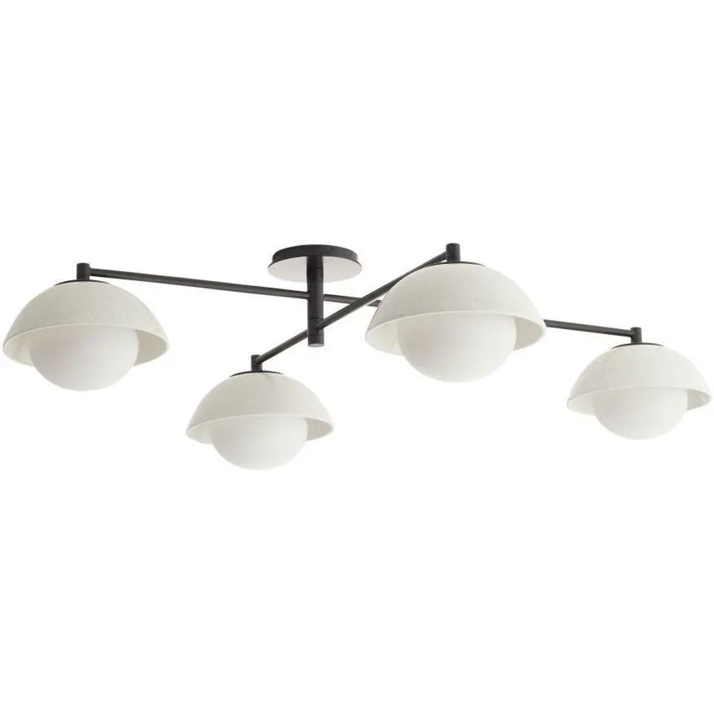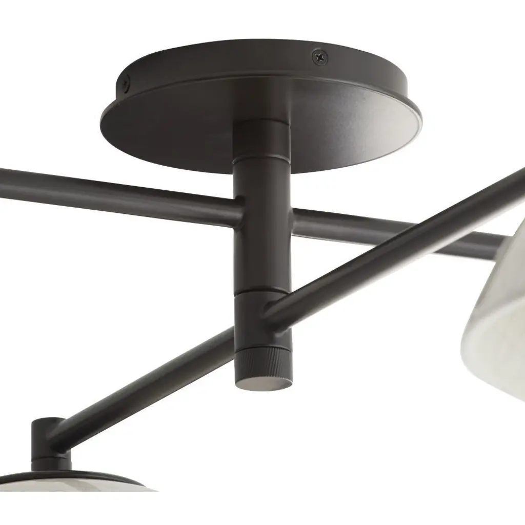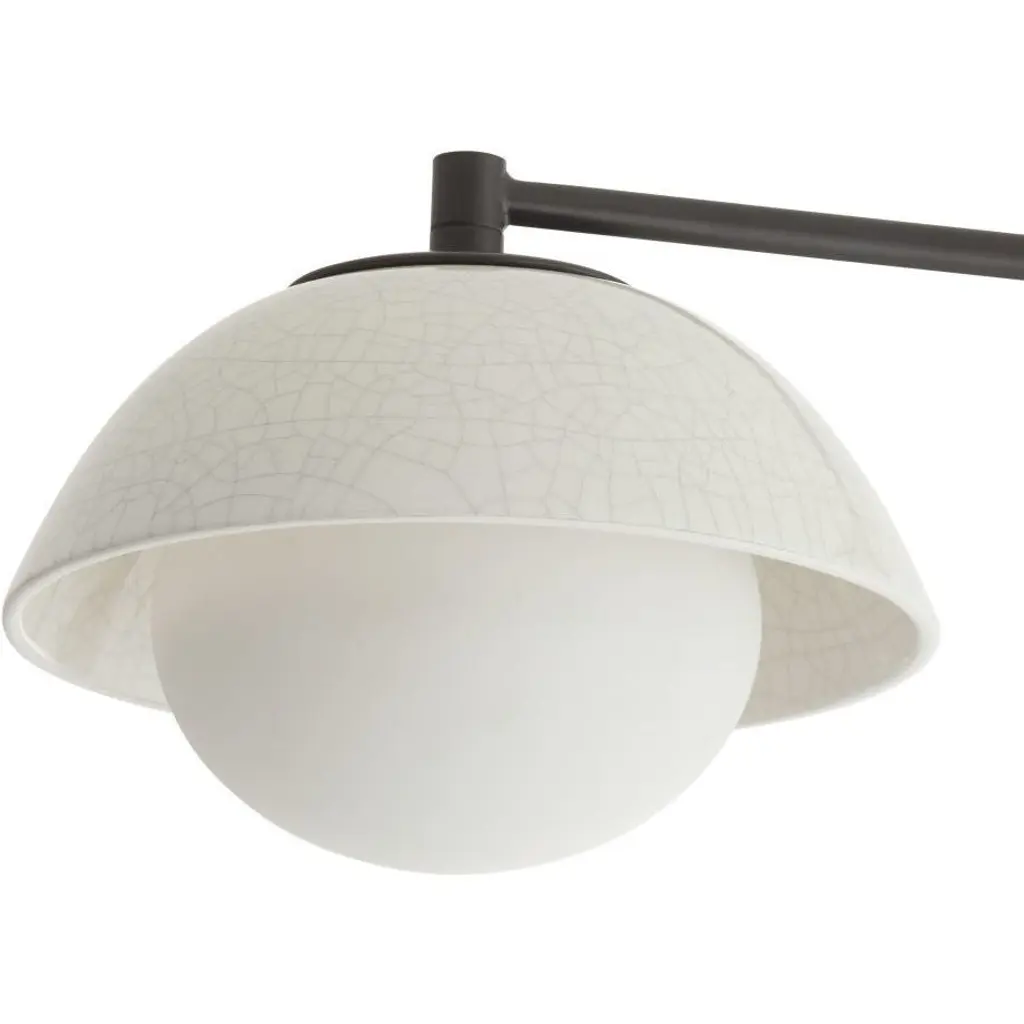 A highly flexible solution for spaces of all kinds, the Glaze multipoint flushmount features two adjustable, pivoting arms with four frosted glass lights with stained ivory crackle ceramic shades. The design offers users the ability to customize the blackened steel fixture's layout to the space, casting light where it is needed. This flushmount is an excellent option for transitional spaces like foyers and hallways, also bringing drama to areas with lower ceilings. Finish will vary.