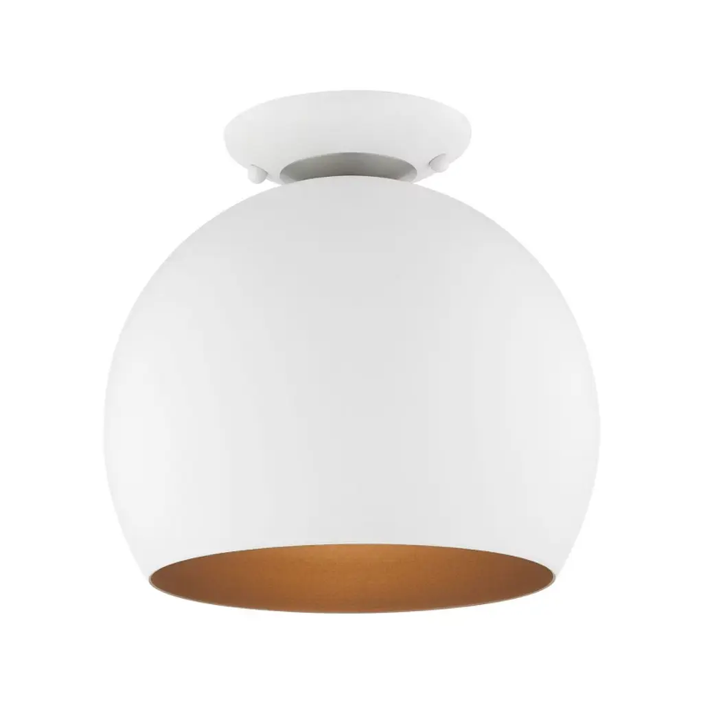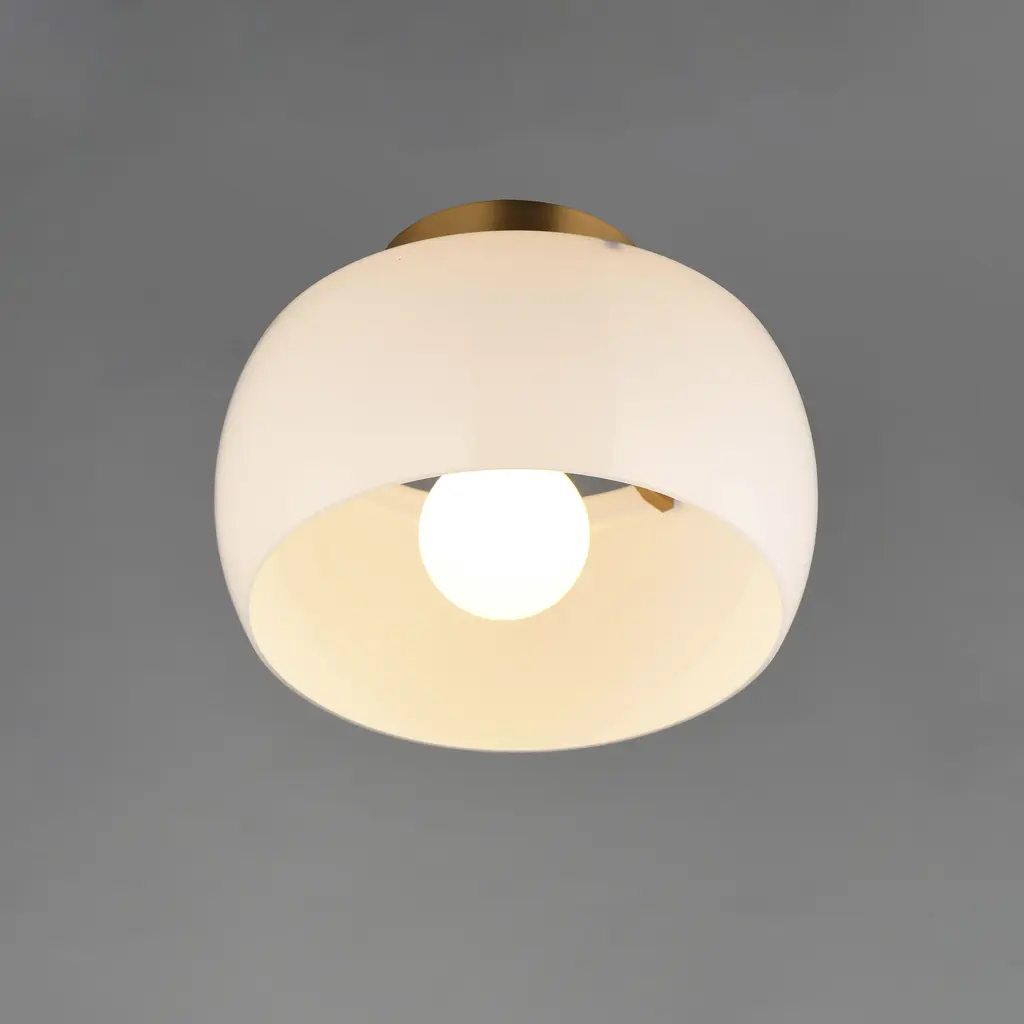 Glazed 1 Light 11 Inch White And Natural Aged Brass Flush Mount Ceiling Light