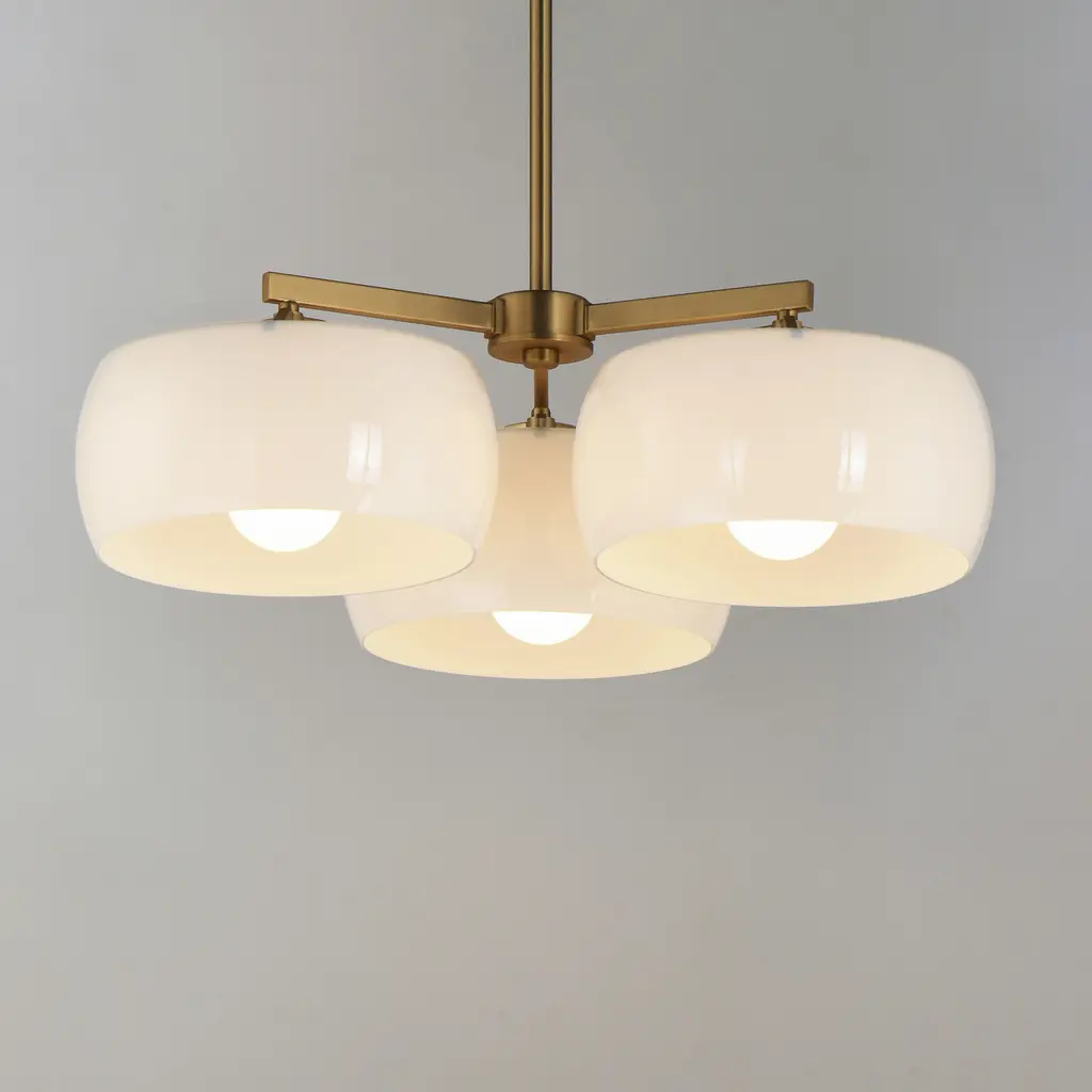 Glazed 3 Light 26 Inch White And Natural Aged Brass Chandelier Ceiling Light