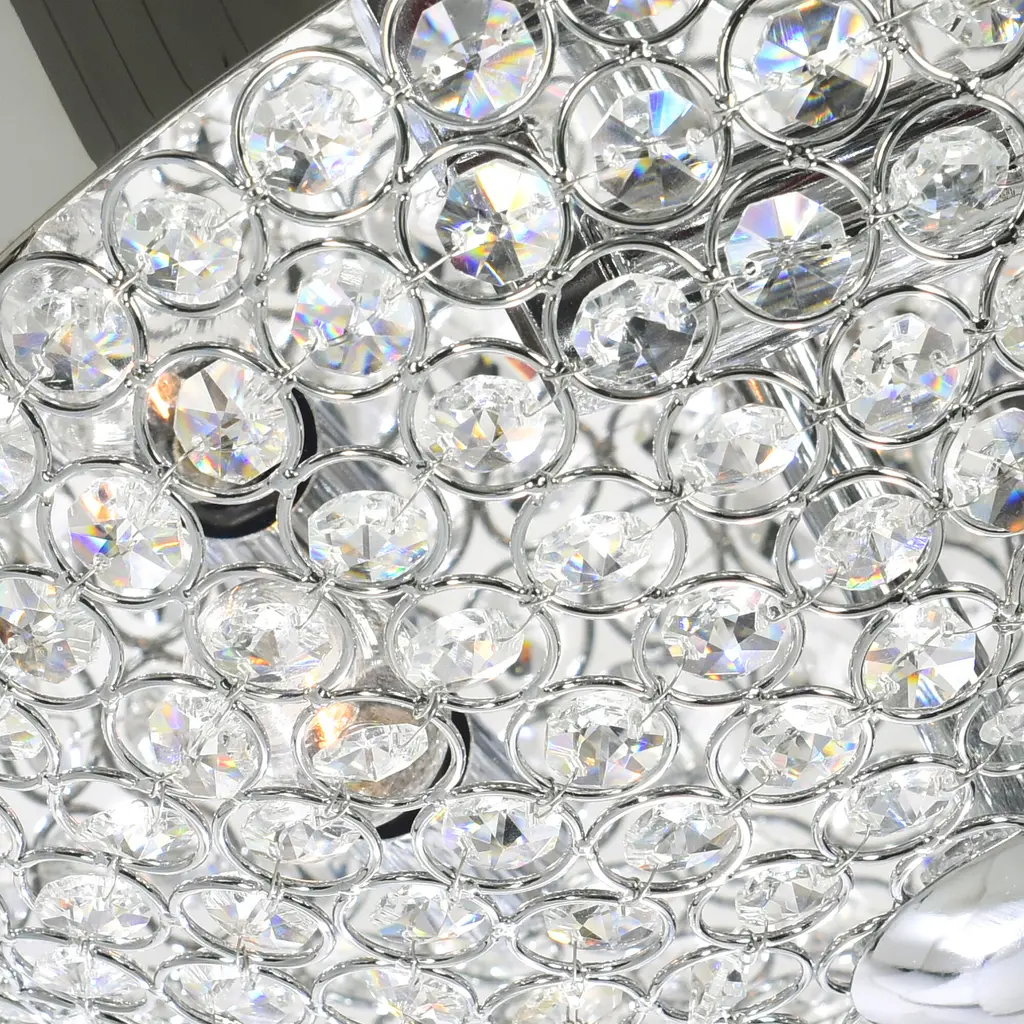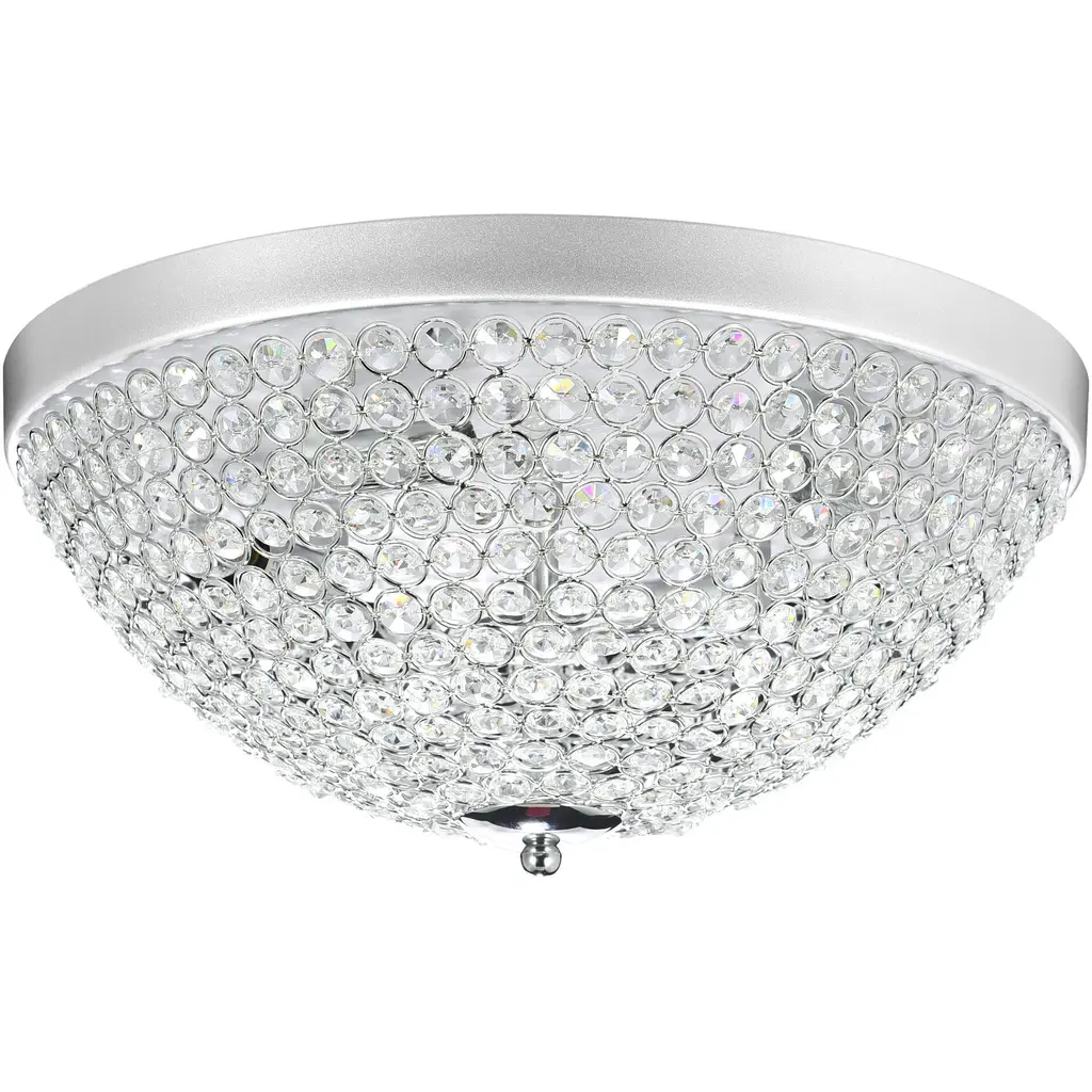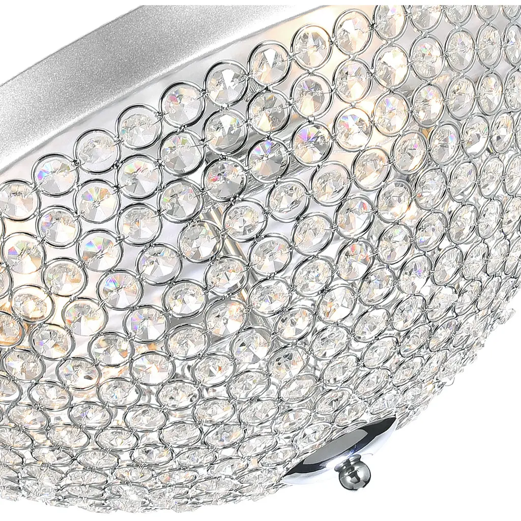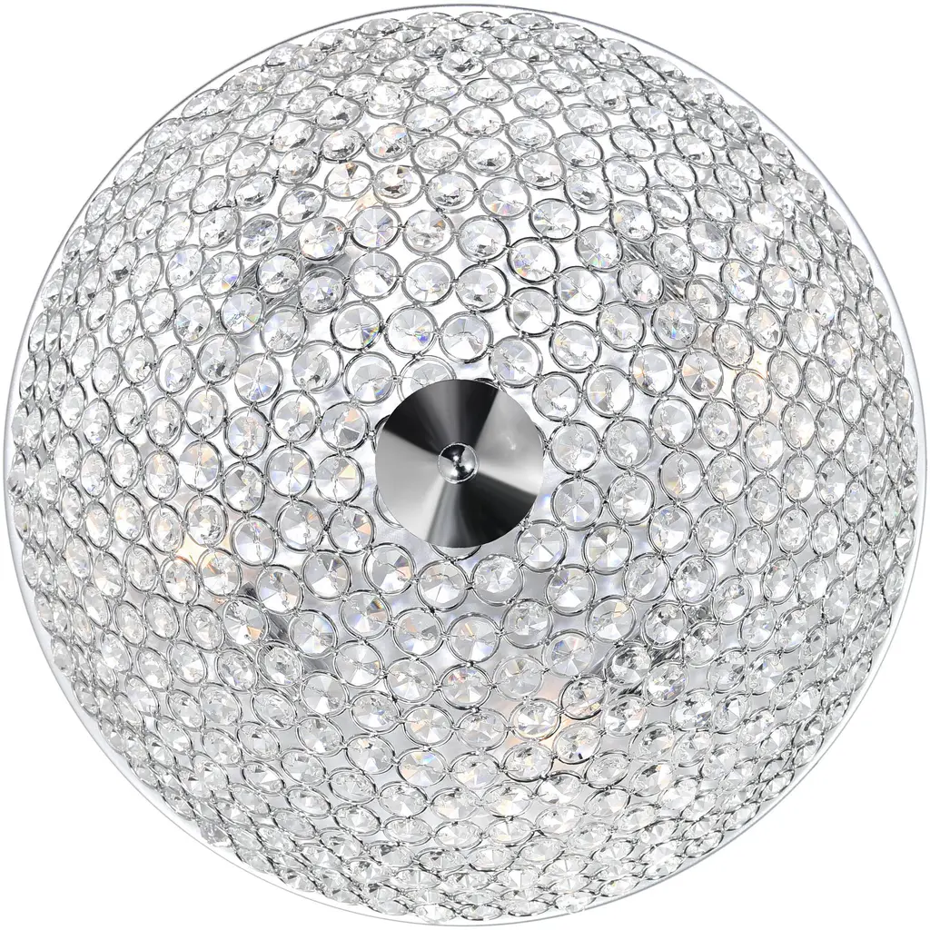 This breathtaking Globe 16'' 4 Light Flush Mount Chandelier is a beautiful piece from our Globe Collection. Designed with a bowl-shaped chrome frame covered in dazzling clear crystals, this flush mount light offers a stunning combination of elegance and function. The four E12 bulbs inside project light that dances through the crystals, creating a radiant prismatic glow that elevates any interior. Ideal for bedrooms, hallways, or entryways, this flush mount adds a touch of luxury to low-ceiling spaces with ease. Finish: Chrome Light Count: 4 Bulb Base: E12 (Bulbs not included) Light Source: Incandescent or LED Compatible Adjustable Hanging Height: N/A Flush Mount Material: Metal and Crystal Style: Glam / Transitional
