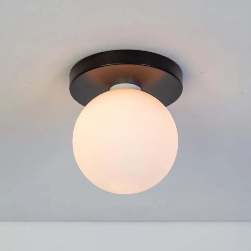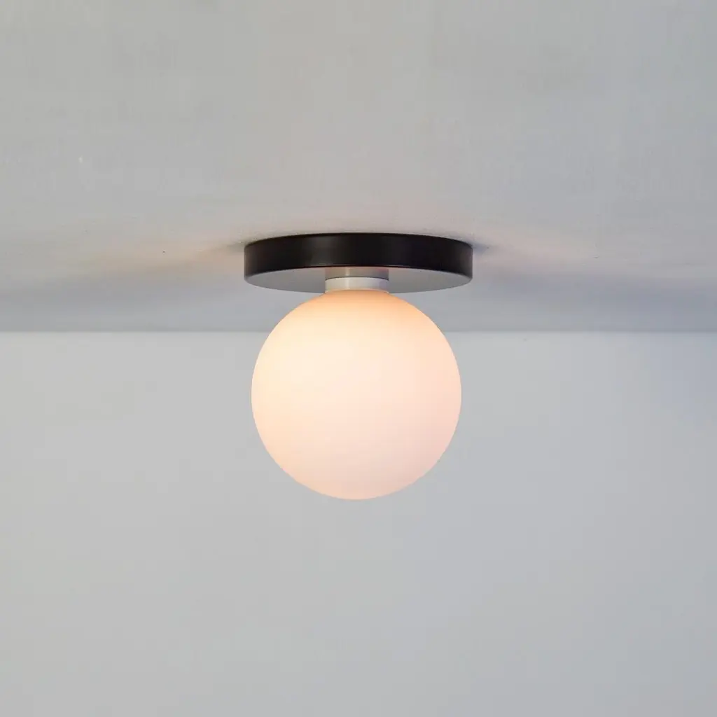 Globe Flush Mount By Research.lighting, Black, 5In Glass Globe, Made To Order