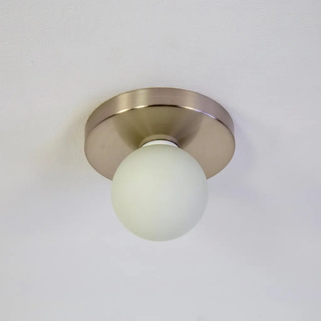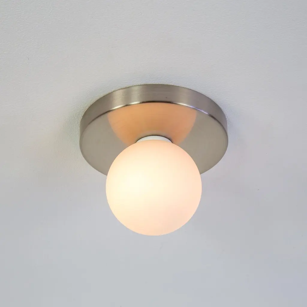 Globe Flush Mount By Research.lighting, Brushed Nickel, 3In Glass Globe, Mto