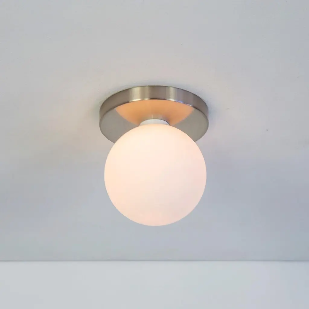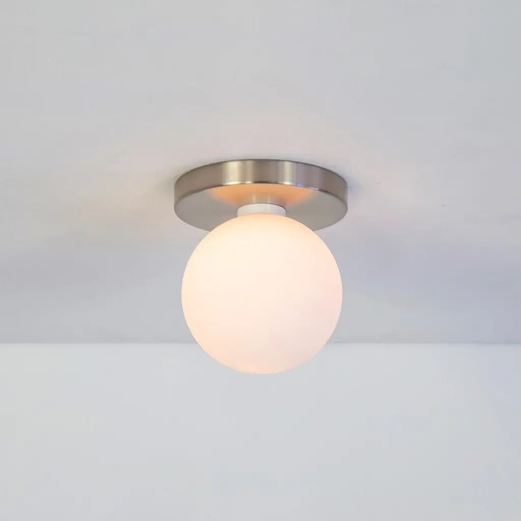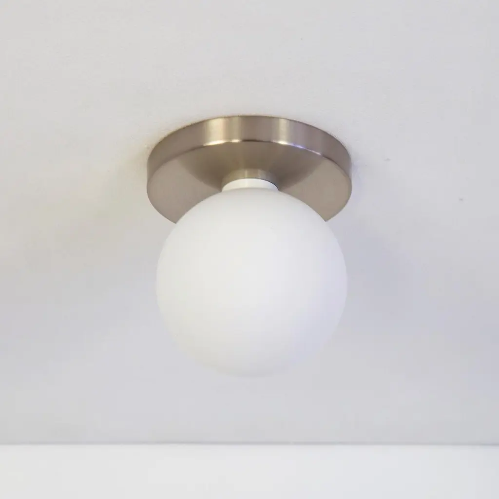 Globe Flush Mount By Research.lighting, Brushed Nickel, 5In Glass, Made To Order
