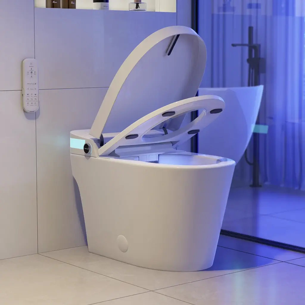 Elevate your bathroom with our Automatic Smart Bidet Toilet featuring rear ambient lighting and 1.32 GPF efficiency. Enjoy auto open lid, heated seat, and adjustable nozzle wash with self-cleaning. Complete with 4 flushing methods, warm dryer, and 4-layer safety protection for worry-free luxury.