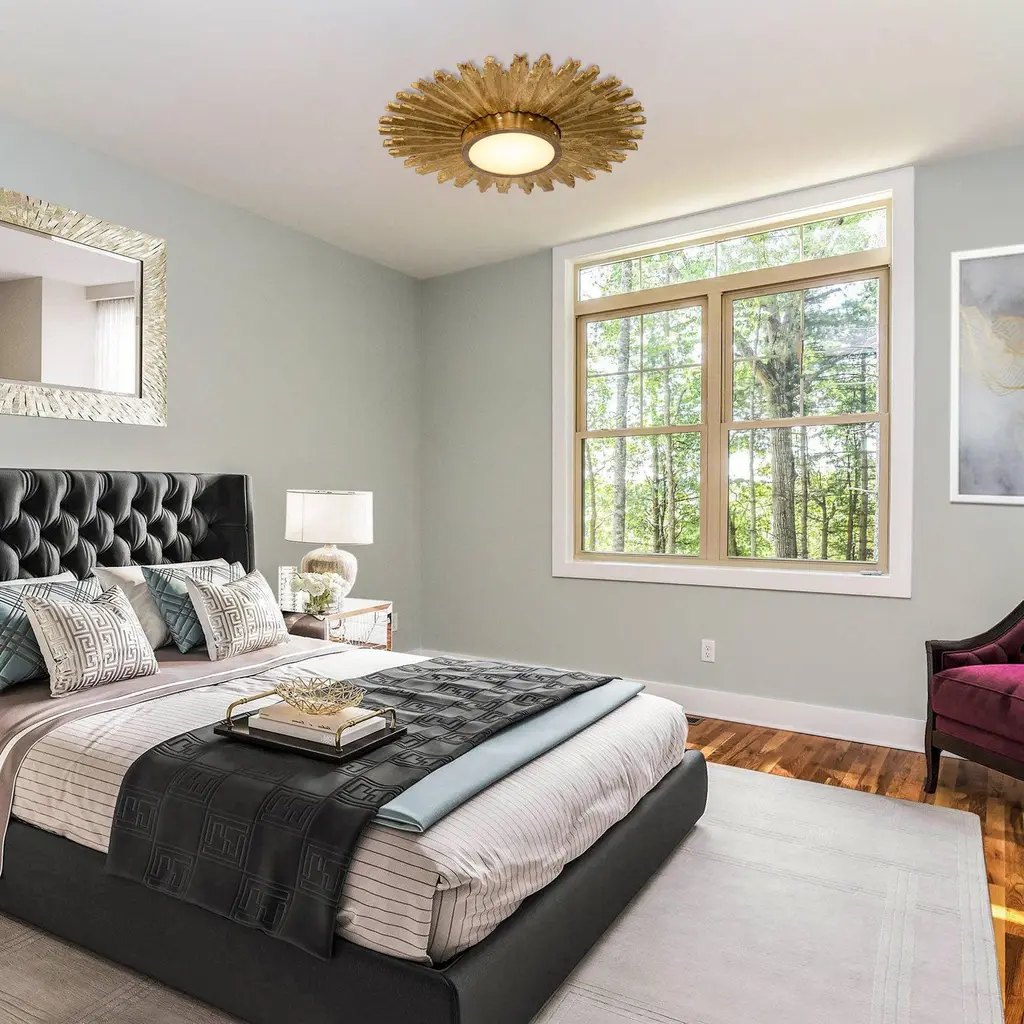 Illuminate your space with this golden sunburst ceiling fixture. The fixture is artistic, beautiful and functional. It's perfect for decorating a closet, hall, bedroom or hallway. Besides, the acrylic lampshade diffuses bright light and the light source has a maximum power of 16W, making it perfect for your home.