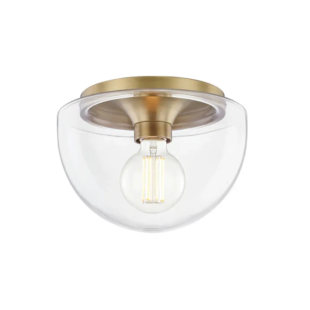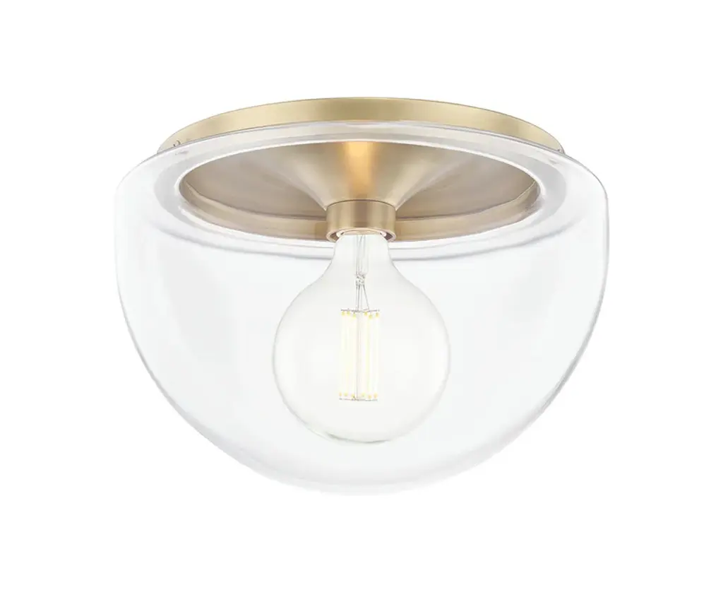 This statement light provides a modern upgrade to any room that's sure to impress family, friends and guests alike. The Grace Flush Mount from Mitzi by Hudson Valley Features a handcrafted glass shade with a smoothly machined metal base, this flush mount installation offers an intriguing contrast of texture while illuminating your space in style.Highlights Damp rated for use in bathrooms and covered outdoor spaces Dimmable to set the mood in any space UL Listed