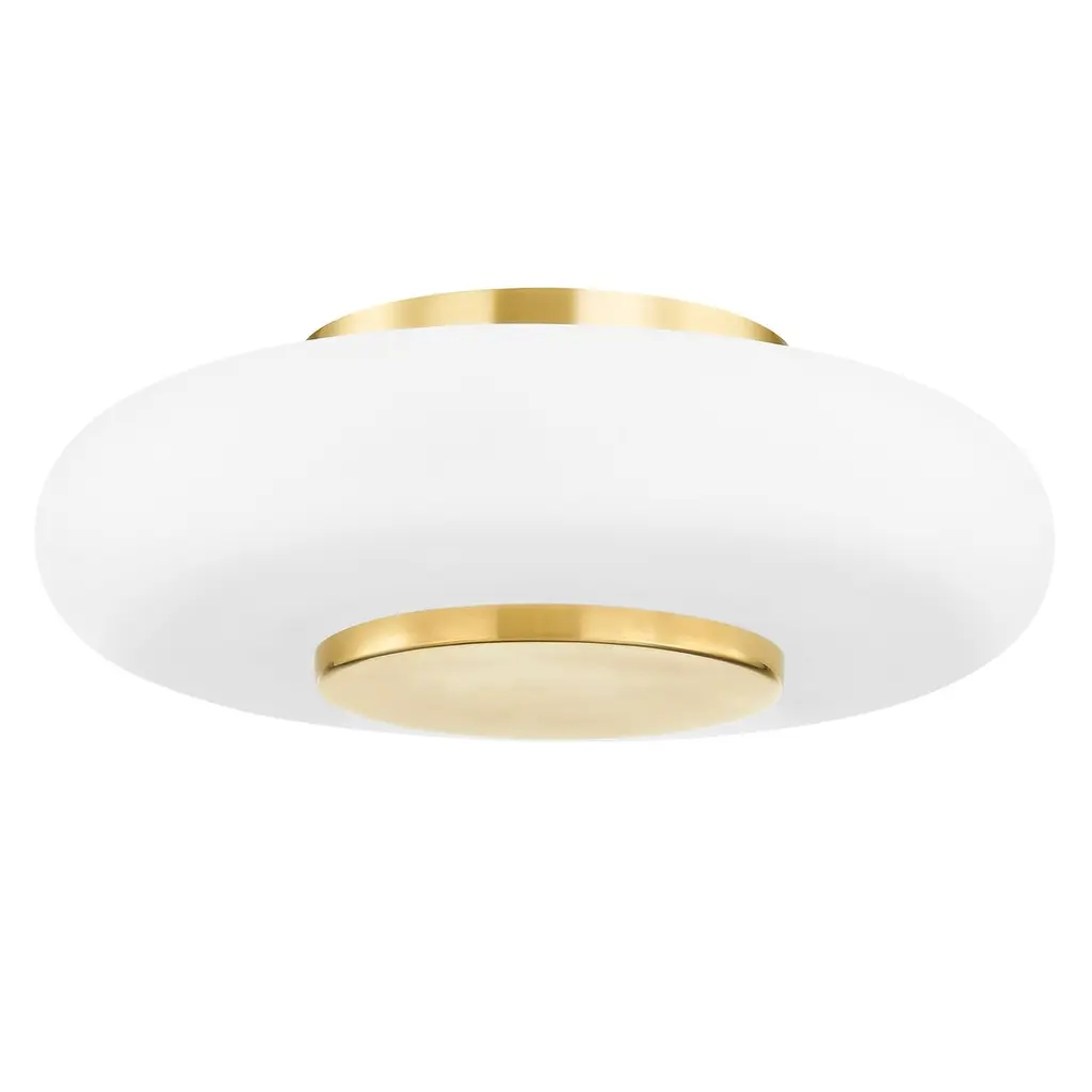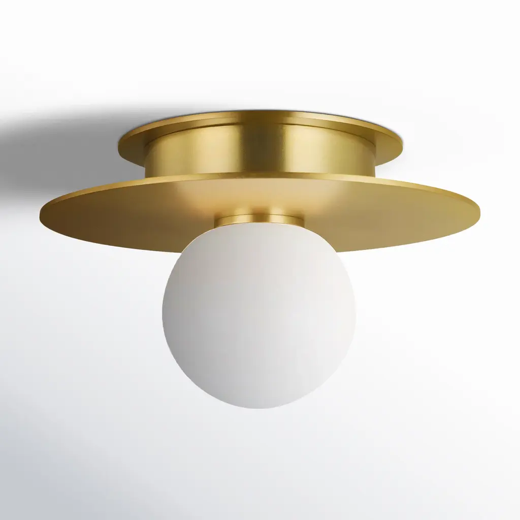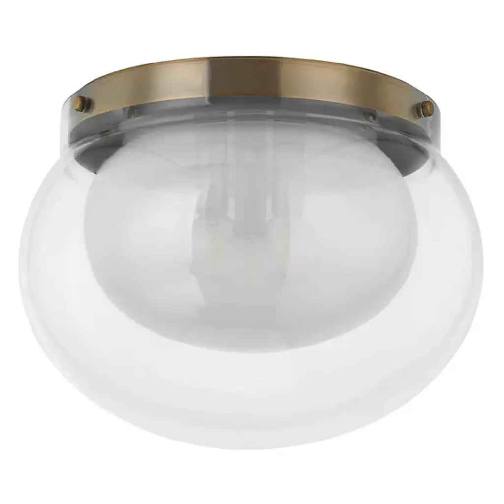 The Gracelyn Flushmount from Huxe features a dual-layer construction with white acrylic nested inside clear glass, offering both diffused and direct lighting options. This layered approach softens harsh light, ensuring the room is filled with a pleasing, ambient glow, while the metal hardware anchors the glass components. The combination of materials creates ambient illumination that works well in rooms where traditional chandeliers or larger fixtures would feel disproportionate.