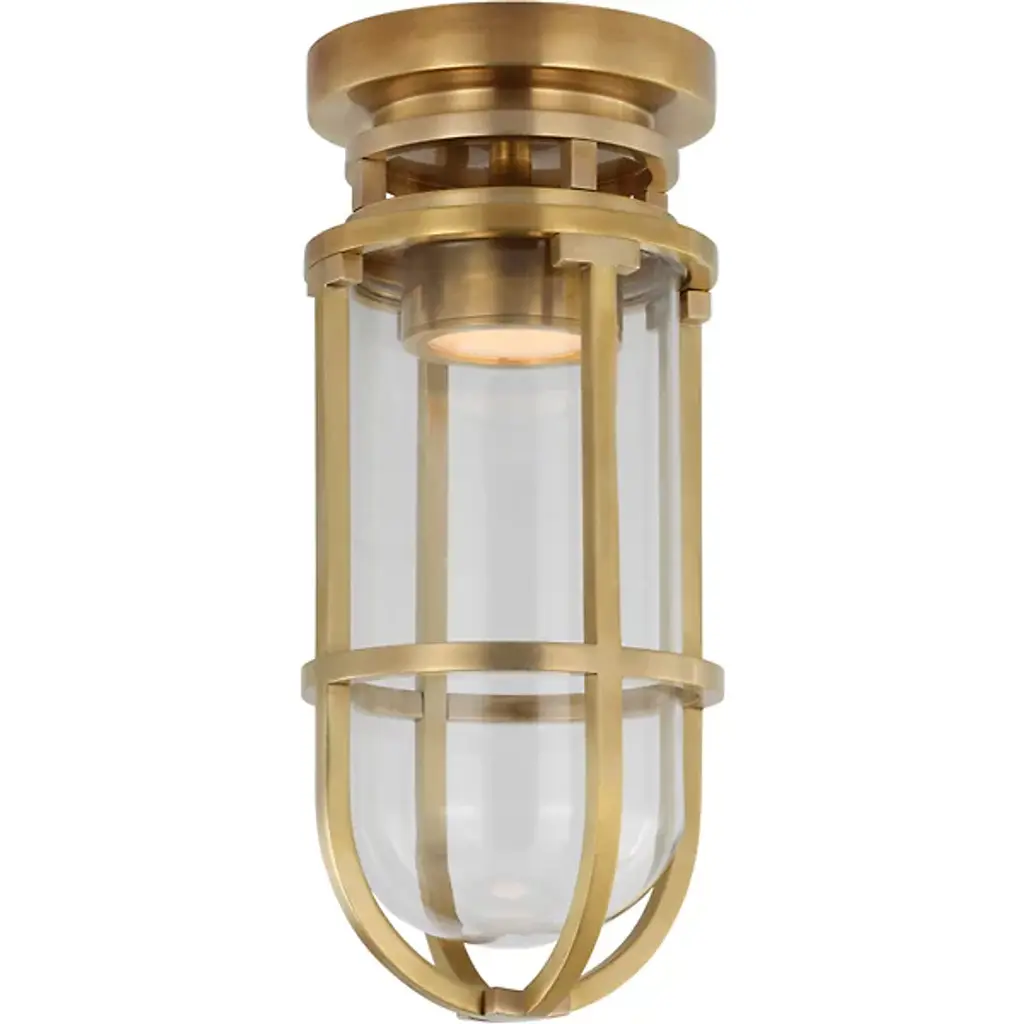 The Gracie LED Flushmount by Visual Comfort Signature, formerly known as Visual Comfort, has a clean, contemporary look that pairs form and function together in a simple way. An openly styled, boldly finished metal cage surrounds a cylindrical glass shade with a rounded base, both protecting and allowing the LED source within to shine freely. An even wash of illumination escapes in all directions, making this a great choice to create a welcoming environment, guide the way down a corridor, and more, all while highlighting the neatly arranged lines and curves of this design.