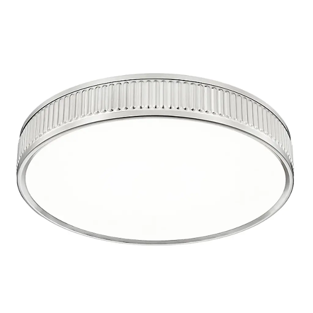 The Greer LED Flushmount from Huxe features a detailed metal pattern, adding subtle movement and dimension to any space. Designed for energy efficiency, it includes integrated LEDs that provide long-lasting illumination. A brushed nickel finish enhances the fixture with a sleek, polished contrast, while the frosted acrylic diffuser ensures soft, ambient lighting. Ideal for bedrooms, dens, or hallways, this ceiling light blends contemporary design with functionality, making it a stylish and practical addition to any home.