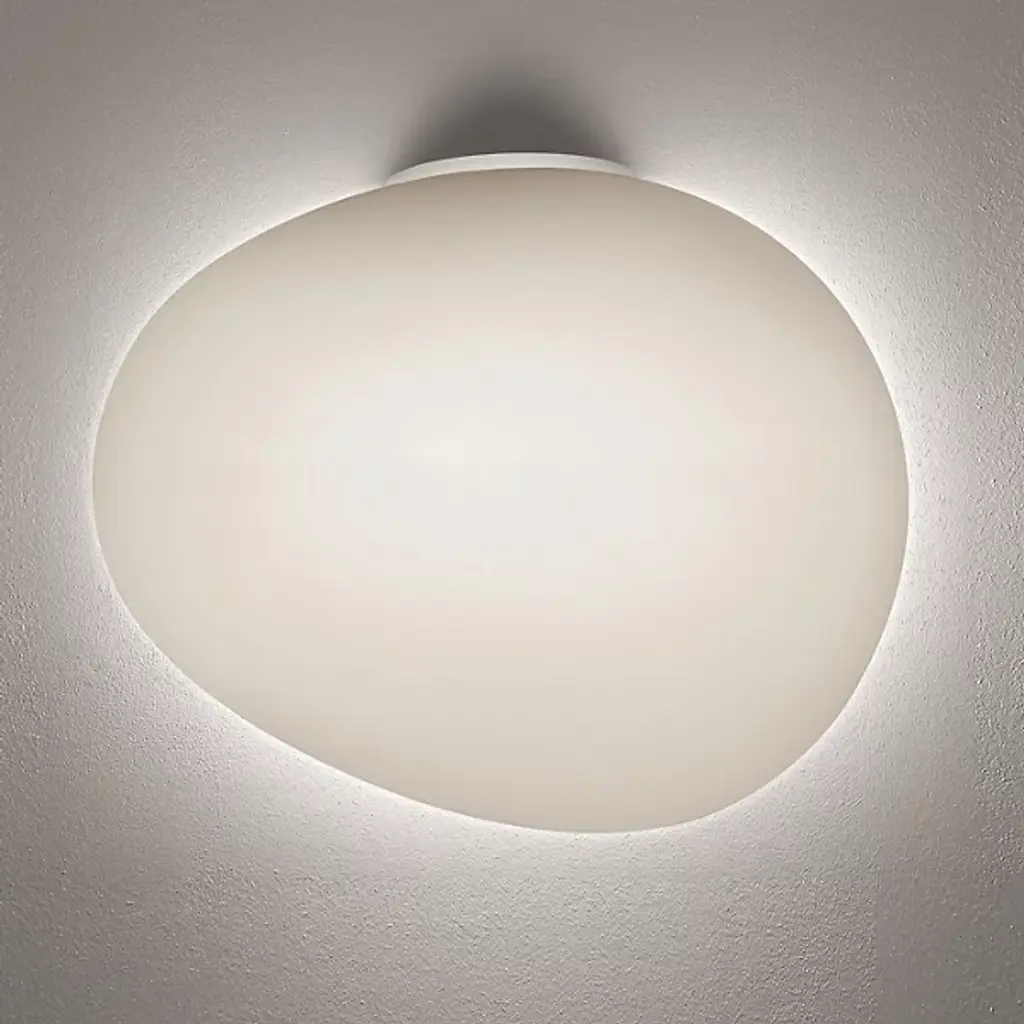 A bubble of light on the wall or ceiling, the Foscarini Gregg Wall / Flushmount gives spaces a unique sense of depth. Its playful form comes from a blown satin glass shade, available in a variety of sizes. An organic, elegant and familiar shape designed by Ludovica & Roberto Palomba.
