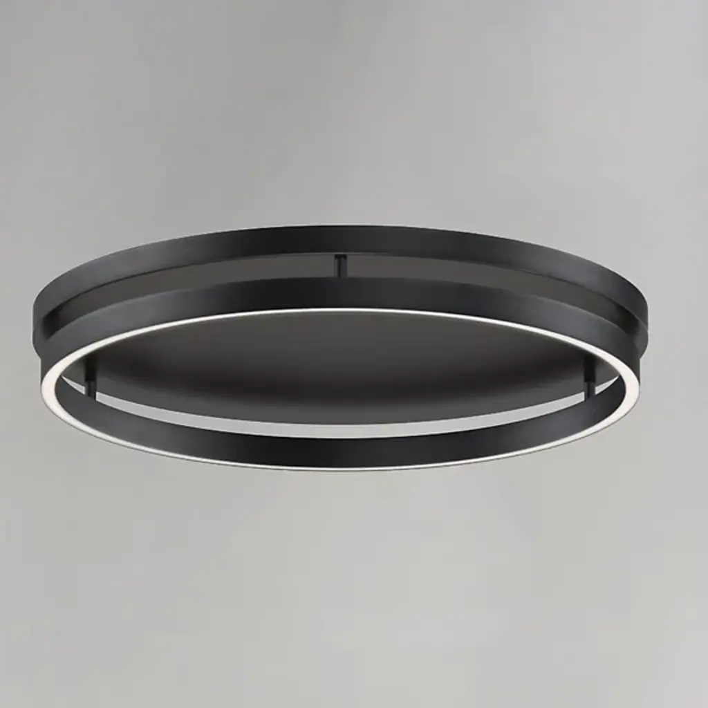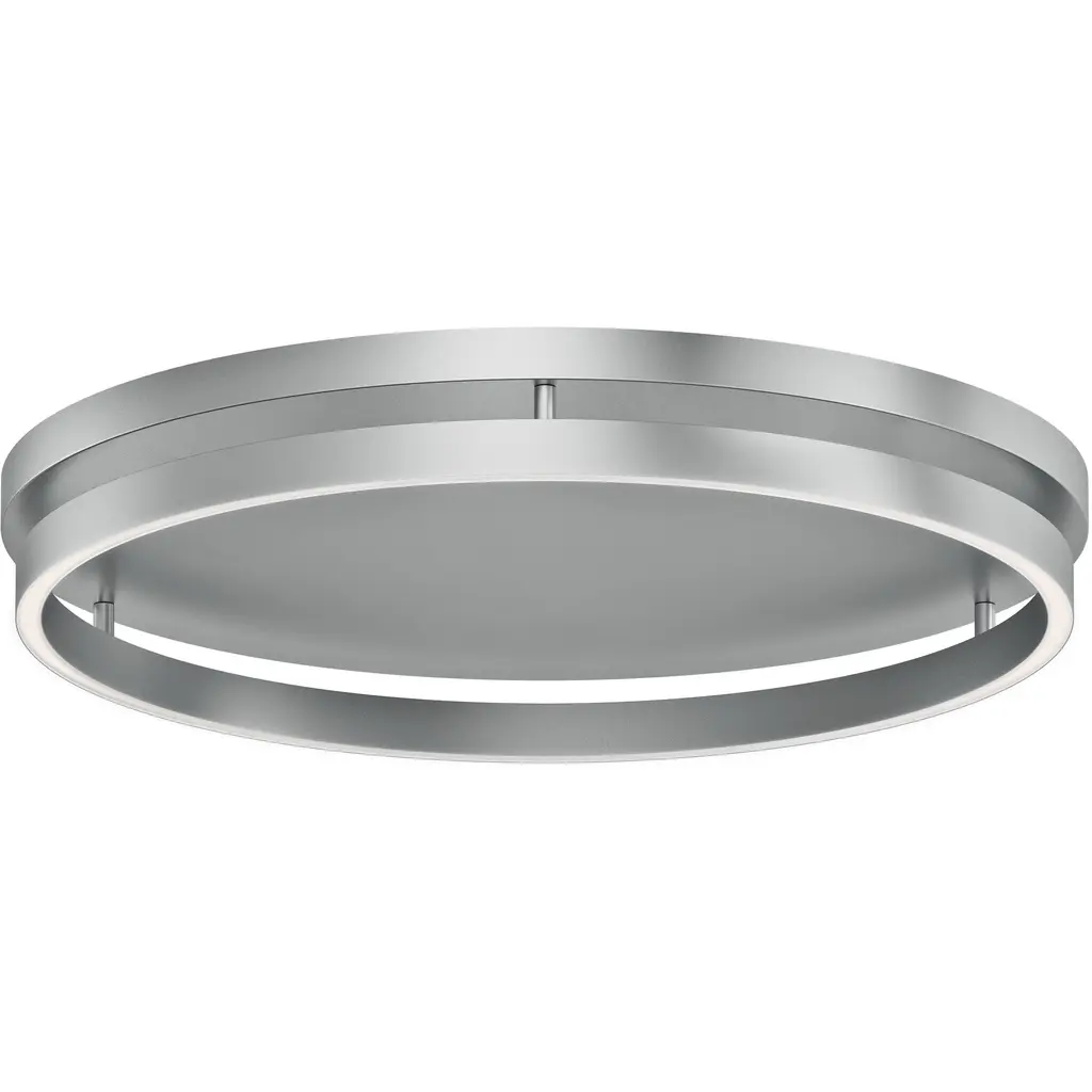Expand your ceiling spaces with the sleek, contemporary stylings of the Groove LED Flushmount from ET2 Lighting. A simple fixture on first inspection, its refined design leaves nothing to chance, dropping a ring-shaped housing for its LED lamping from a sleek disc canopy. An acrylic diffuser strip runs the length of the housing’s inner channel, enclosing the damp-listed lamping and transforming bright glare into a pleasing ambiance that burnishes the aluminum structure and its surroundings with welcome warmth.