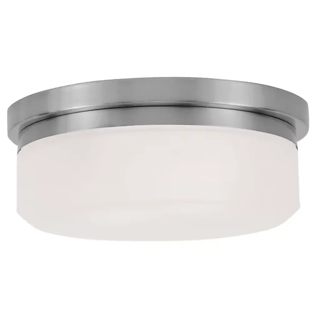 The Hadley Flushmount by Hinkley Lighting takes the familiar silhouette of a flush mount and changes a few features to allow it an adequate place within the contemporary living environment. The fixture sports a steel framework that holds the glass shade in place. When lit, the fixture utilizes its integral lamping to establish a soft and diffused lighting aura in the immediate application space. The fixture is best suited for living rooms, bedrooms, and other interior living spaces.