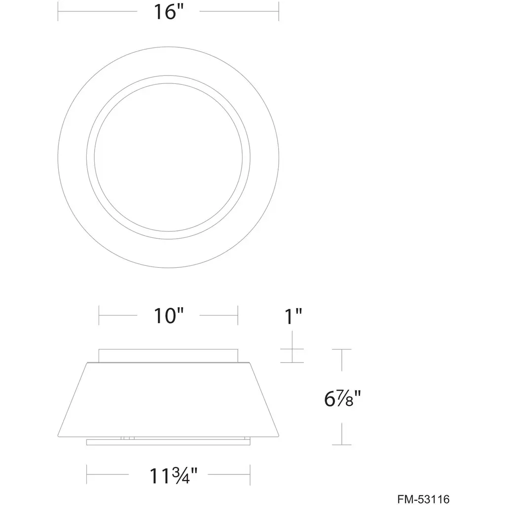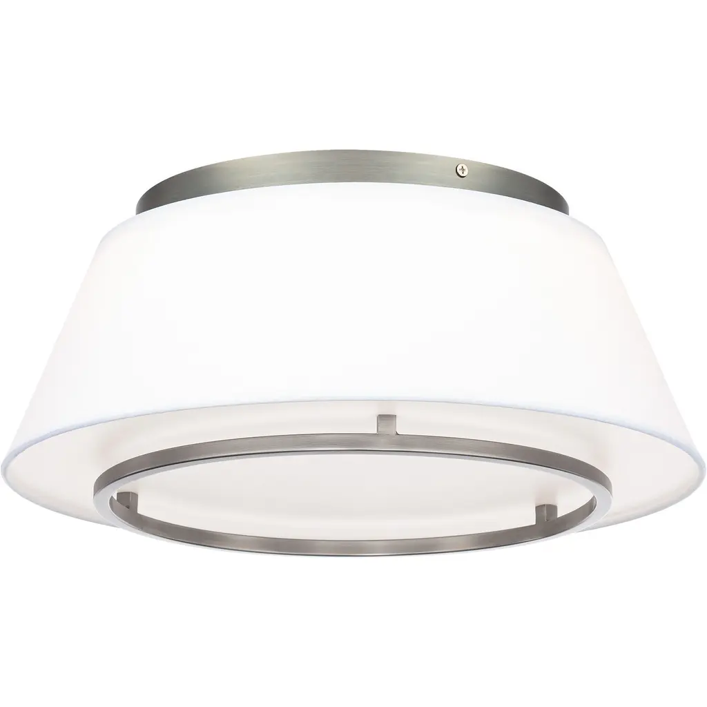 The Hailey LED Flushmount is a versatile contemporary tapered circle of light with a choice of fabric and hardware finish combinations. Backed by strong character lines, it's a classic spin on modern minimalism. The hand-tailored fabric shade is available in a textured or smooth option, creating a soft glow with contemporary elegance when the fixture is lit. Energy efficient integrated LED's provide a long-lasting maintenance-free bright and even illumination. The Hailey flush mount offers a tapered fabric shade and an etched acrylic diffuser, punctuated by bold hardwareâoffered in black, brushed nickel and aged brass finishes. When ordered with black hardware, the white fabric shade is substituted for a gray shade. 16-inches in diameter, this piece is perfectly sized and shaped for modern minimalism in corridors or living spaces. Fine fabrics and hardware complement each other with a soft modern elegance.