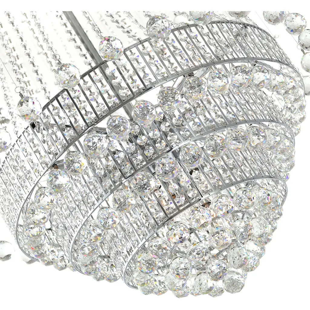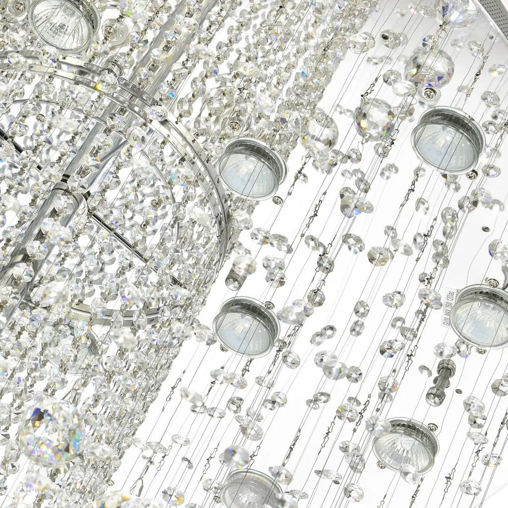 The Hallway 18 Light Flush Mount will provide your space with large-scale shine. It will cast intricate shadows on walls and bring a glittering touch to the entire room.This light fixture has a crystal draping encased in a barely-there curtain of crystals. With this light fixture in your entryway, living room, or stairwell, it would easy to provide your home with character, drama, and that elusive wow factor.