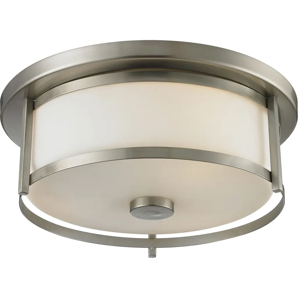 Geometric glass shade with tiered metal frame. The Harbour Point Flushmount by Minka-Lavery is a versatile and practical addition to your home. It has a dome-shaped etched opal glass diffuser encasing halogen bulbs (sold separately) to offer warm, ambient illumination. Sleek metal accents like the bottom ring and thin crossbars add a decorative touch and provide structural support. Round finial at the bottom completes the design on a traditional note. Install this luminaire in the living room, hallway, or bedroom to bring practical lighting and instill minimal charm.