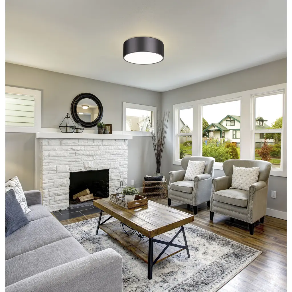 Inspiring with an easy, casual feel, the Harley modern three-light flushmount ceiling light delivers simple elegance with a hint of industrial design elements. A simple ring silhouette forms its drum shade made of cool bronze finish steel, creating a versatile fixture for a low-key but tasteful look in a kitchen, dining space, or living area.