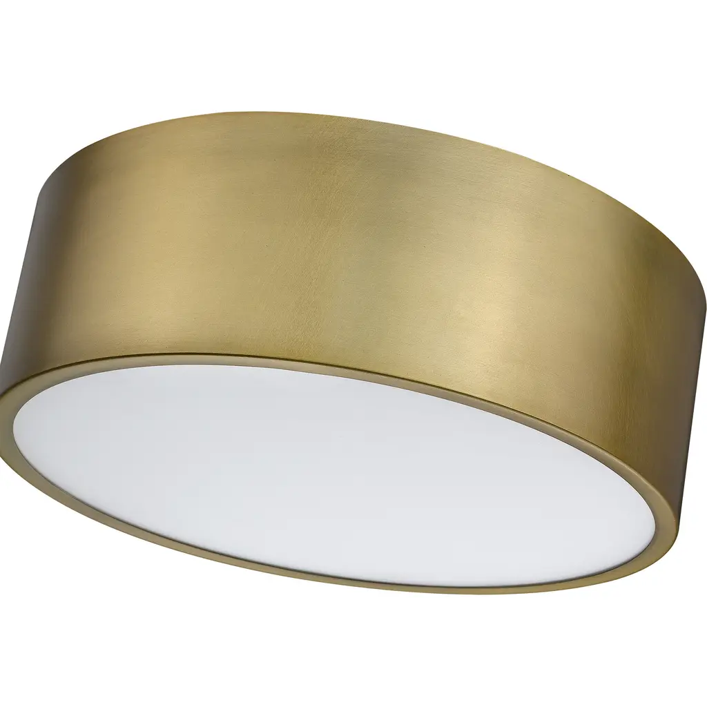 Inspiring with an easy, casual feel, the Harley modern three-light flushmount ceiling light delivers simple elegance with a hint of industrial design elements. A simple ring silhouette forms its drum shade made of warm rubbed brass finish steel, creating a versatile fixture for a low-key but tasteful look in a kitchen, dining space, or living area.