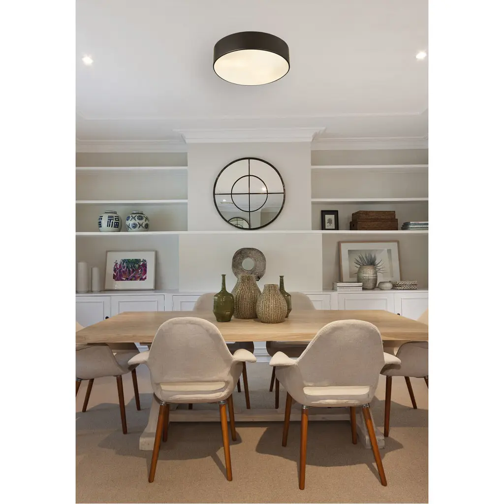Take a page from casual style by illuminating a modern space with the Harley flushmount metal drum ceiling light. This four-light ceiling light offers plenty of lighting in a kitchen, dining area, or main living space, maintaining an easy style. With a cool bronze finish steel shade, its versatile and dynamic.