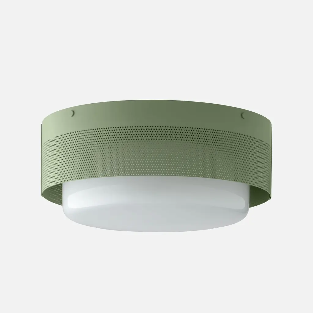 Part of a collection inspired by iconic actress Jean Harlow, the Harlow Round Flush Mount nods to vanity lighting designs of 1930s Hollywood. Perforated steel gives it a modern spin, while understated satin finish options complete the look.