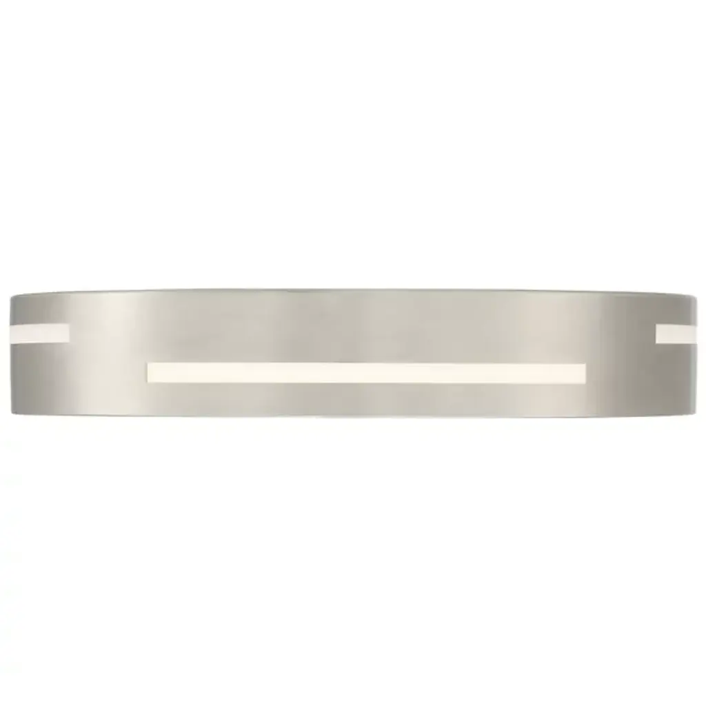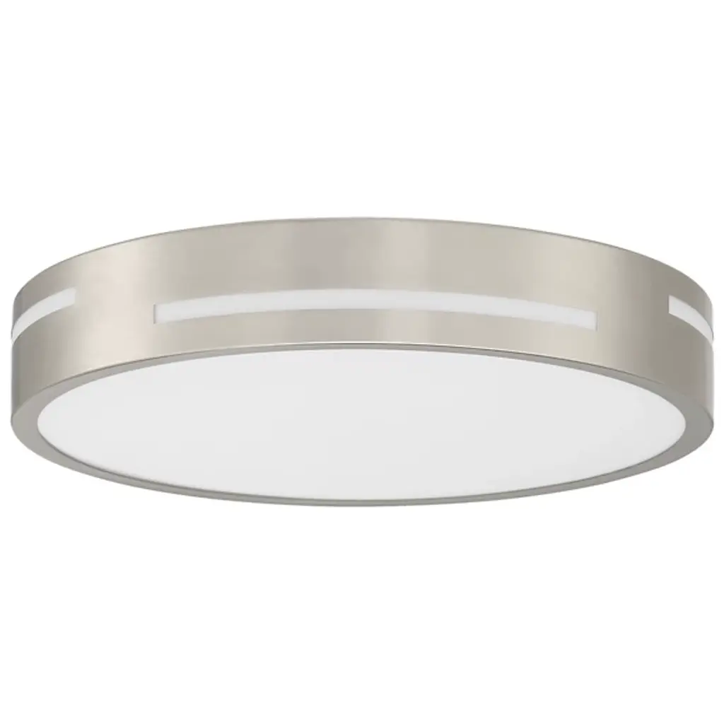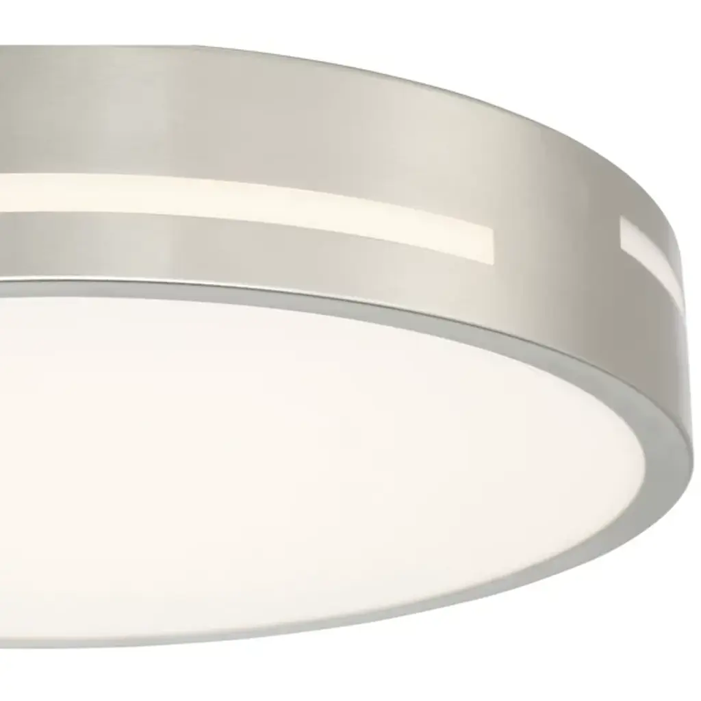 A beautifully balanced lighting look for modern spaces. The Harmony LED Flushmount by Access Lighting has a wide acrylic lens held within a sleek steel ring. Staggered openings cut around the side of the frame allow for gentle dispersal of ambient light around the ceiling, making them functional as well as decorative. Through those slats and the bottom lens, vibrant and energy efficient LED light illuminates all corners of a foyer, bedroom or bathroom.