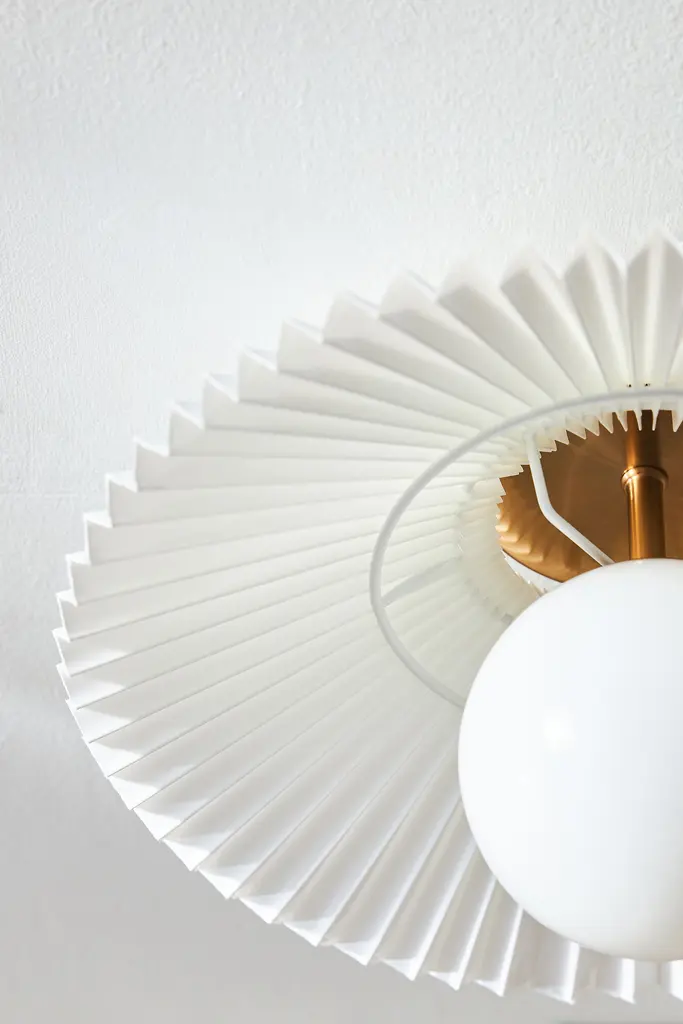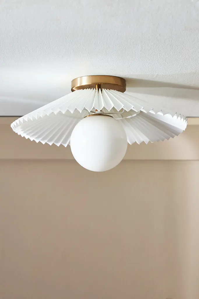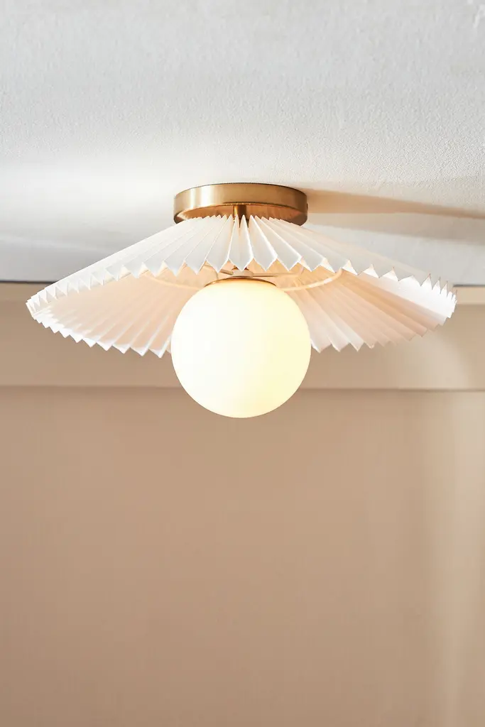 Featuring a gleaming orb sitting within the silhouette of a delicate fan, this flush mount sits right against the ceiling, making it an ideal choice for small spaces and rooms with lower ceilings. This item is UL listed, meaning it has been tested and approved to meet the government-regulated safety standards for the USA. Use with electrical outlets 110-120v or lower, as anything higher can cause fire or injury. If you're purchasing this item for use outside of the United States, employ the adapter and voltage converter suited for your country.