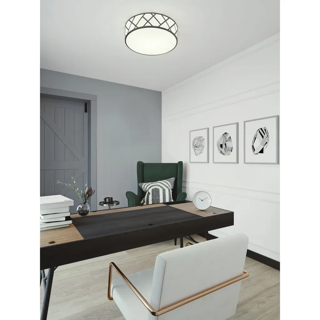 Add a touch of warm, ambient light to your most delicate indoor spaces with the AFX Haven Flush Mount. This indoor flush mount fixture is designed with a metal geometric pattern accent, making it perfect for a variety of interior design schemes. Light also effortlessly flows trough the full white acrylic diffuser on the side and bottom. Use this flush-to-the-ceiling light fixture to boost the look of any hallway, bedroom or living room space.