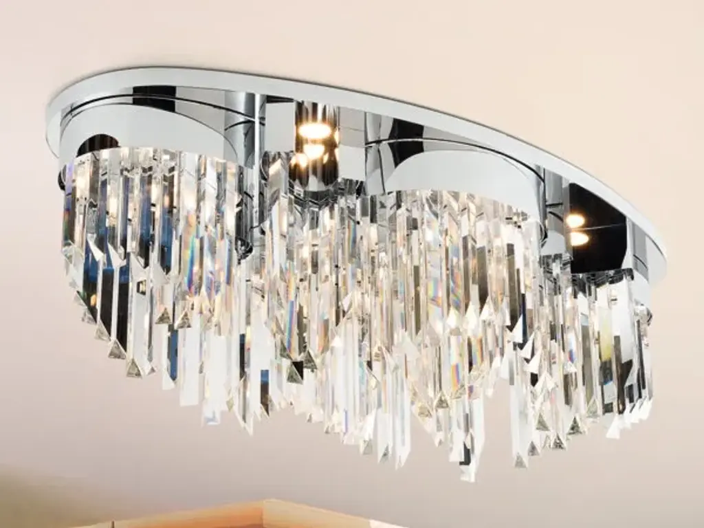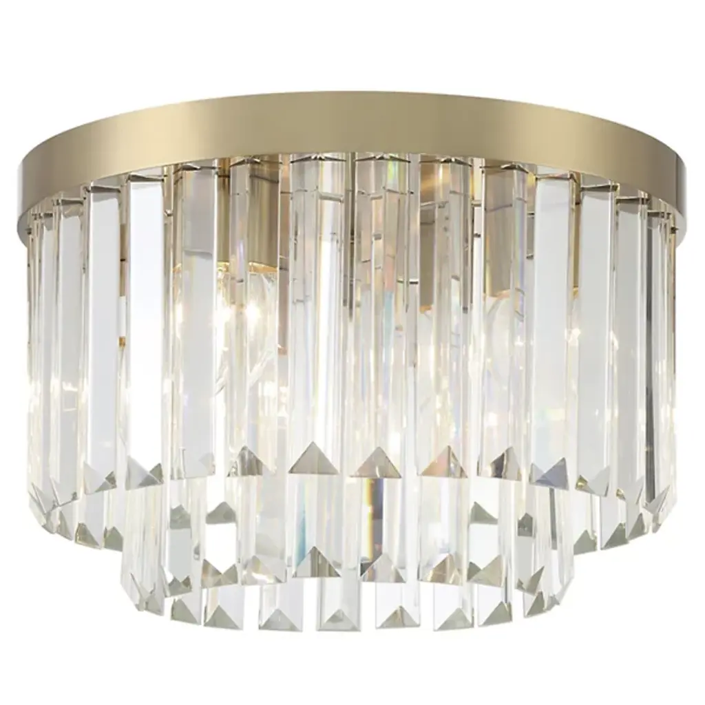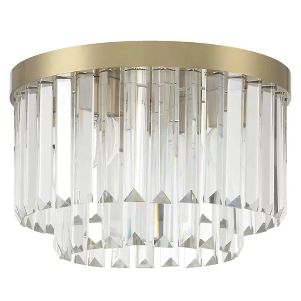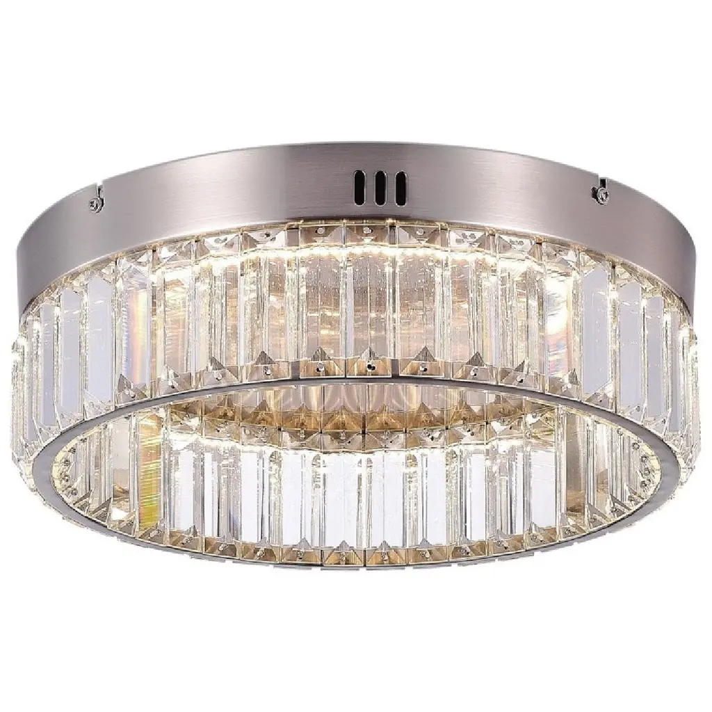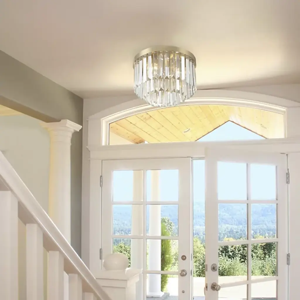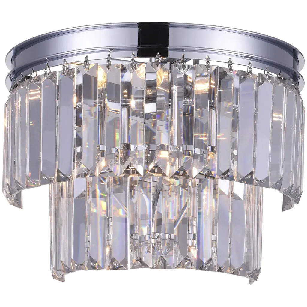 Experience the captivating allure of the Hayes Flushmount from Crystorama, designed to make a lasting impression. Every detail of this fixture has been meticulously crafted, showcasing tiered multi-faceted crystals delicately secured by a sturdy Polished Nickel steel frame. The sleek and polished finish adds a modern touch, infusing your surroundings with contemporary sophistication. More than just a lighting fixture, it is a work of art that captivates and commands attention, becoming the focal point of any room.