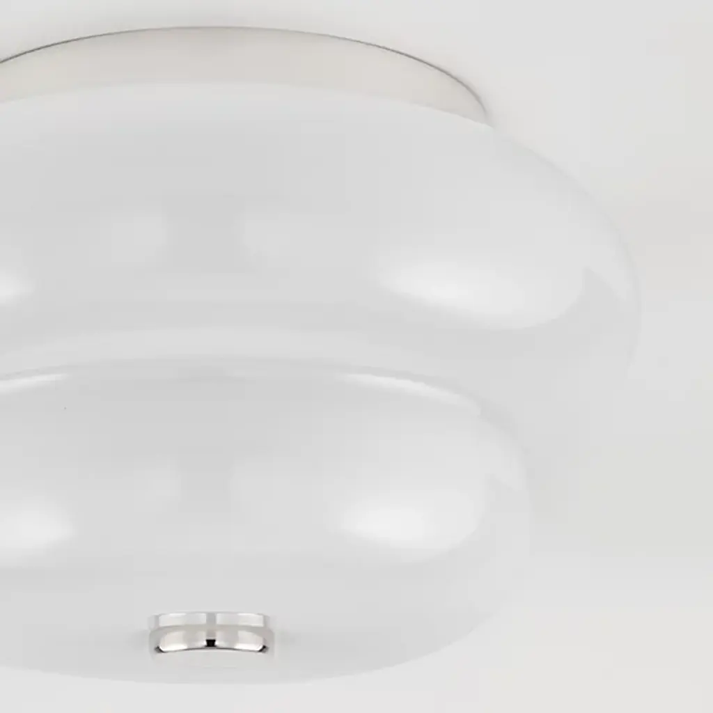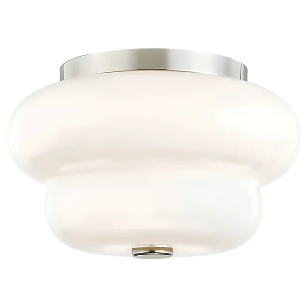 A voluptuous modern classic for any room. The Hazel 2-Light Flushmount by Mitzi has a Glass shade with plenty of curves. Complete with a simple Steel frame, this ceiling mount boasts contemporary simplicity that's ideal for just about any home, from traditional to minimalist and modern. The shade produces a warmly diffused, flattering illumination that's universally beautiful. Mount it in the bedroom, living area or hallway to add more light without taking away attention from your decor and furnishings. This fixture is perfect for adding that extra touch to your ambiance to accentuate your style.