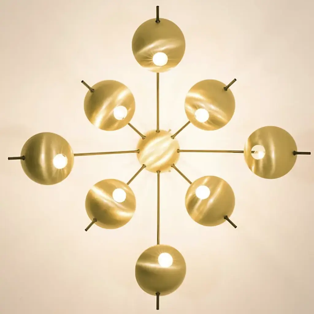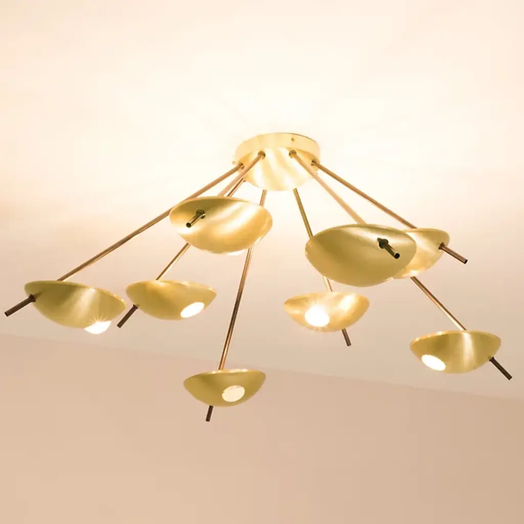 The Helios Octo Wall / Flushmount is presented by Design For Macha. Handmade in Italy by artisans, this piece of luxury lighting is inspired by the sundial, which is an ancient form of telling time through the solar position in the sky. Designed for display as a flushmount on the ceiling or as a lighting unit on the wall, the elevated attention to detail and composition of luxe materials help to distinguish the Helios Octo.