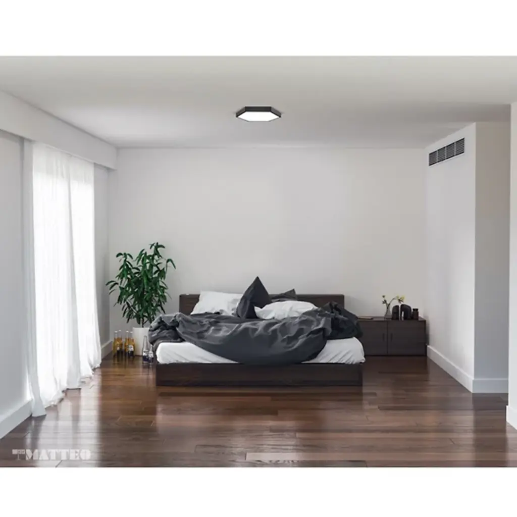 With a clean geometric design, the Hexol LED Flushmount by Matteo Lighting makes a welcome addition to nearly any modern room. Its low-profile silhouette allows the piece to integrate easily into any sized space, with a sharp hexagonal metal frame holding the piece to the ceiling. An inset white acrylic diffuser gives the piece a flush base, while its integrated LED fills the room with a bright and balanced layer of energy-efficient light.