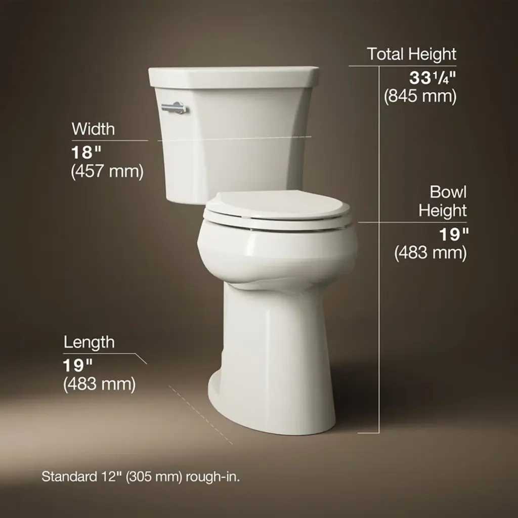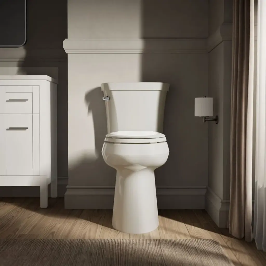 The toilet is a Highline™ 1.28 GPF (Water Efficient) Elongated Two-Piece Toilet with a High-Efficiency Flush (Seat Not Included) to provide ultimate accessibility and ease of use. With its clean, straightforward design and efficient performance, this water-conserving toilet combines style and function. An innovative 1.28-gallon flush setting provides significant water savings of up to 16,500 gallons per year, compared to an old 3.5-gallon bathroom, without sacrificing flushing power.