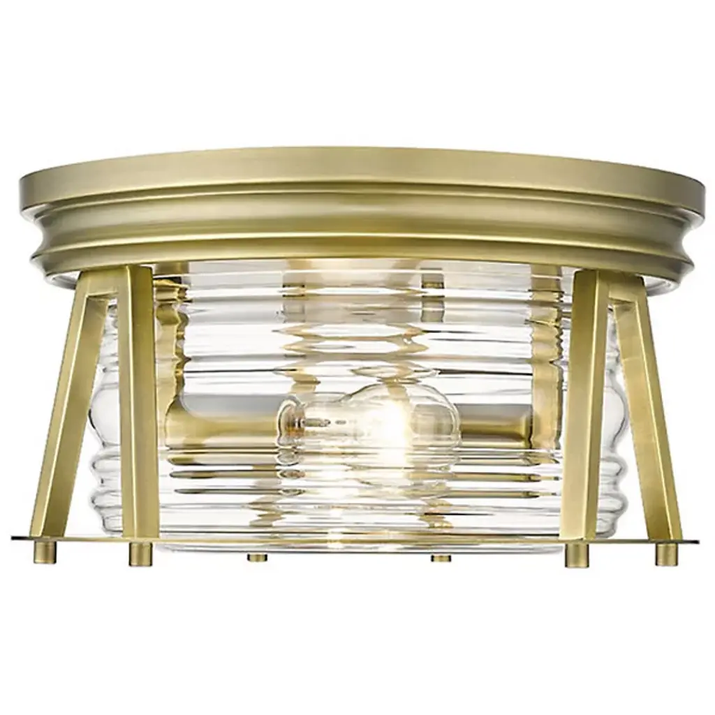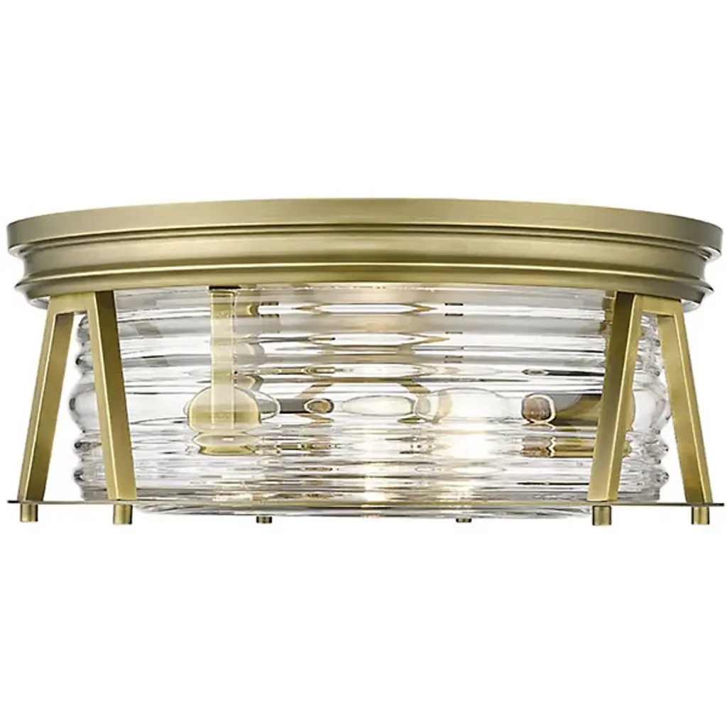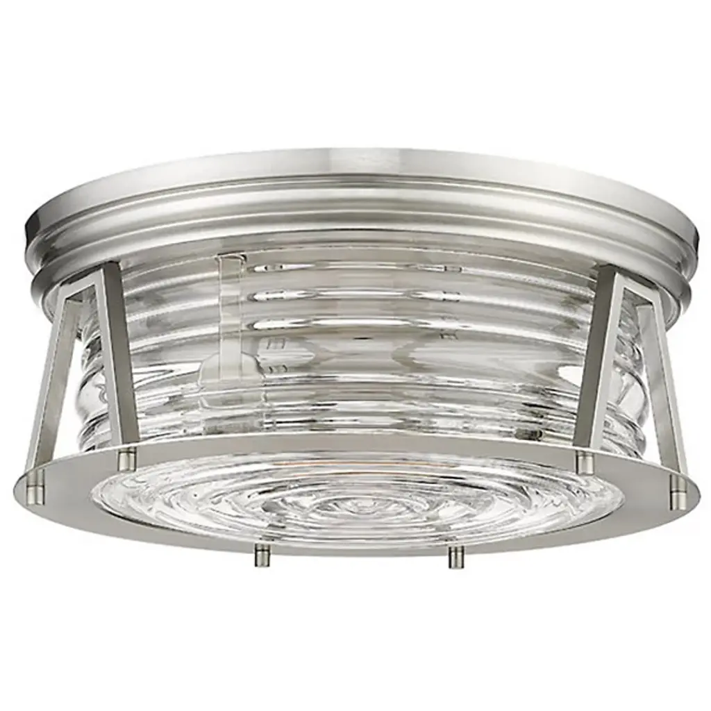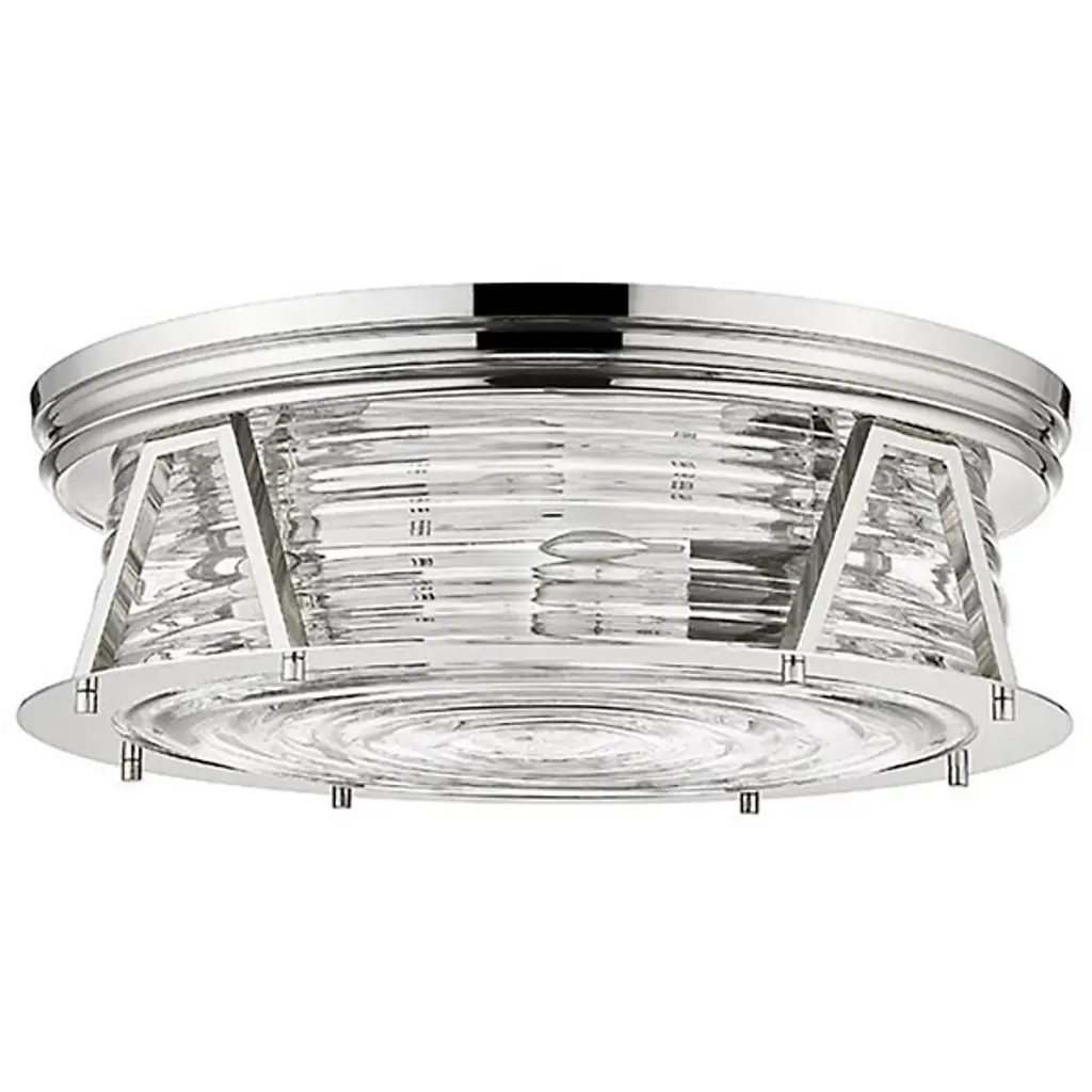 The Hill Flushmoutn from Alder & Ore illuminates your modern space with a touch of historical charm. Drawing inspiration from the nautical heritage of coastal Cape Harbor in North America, this fixture beautifully blends Art Deco elements with a linear concept. Its design features an angled frame and canopy, cradling ribbed clear glass that exudes an aesthetic transitioning seamlessly from industrial to modern to coastal. Revel in the warm and inviting ambiance it provides to your space, combining history with contemporary style.