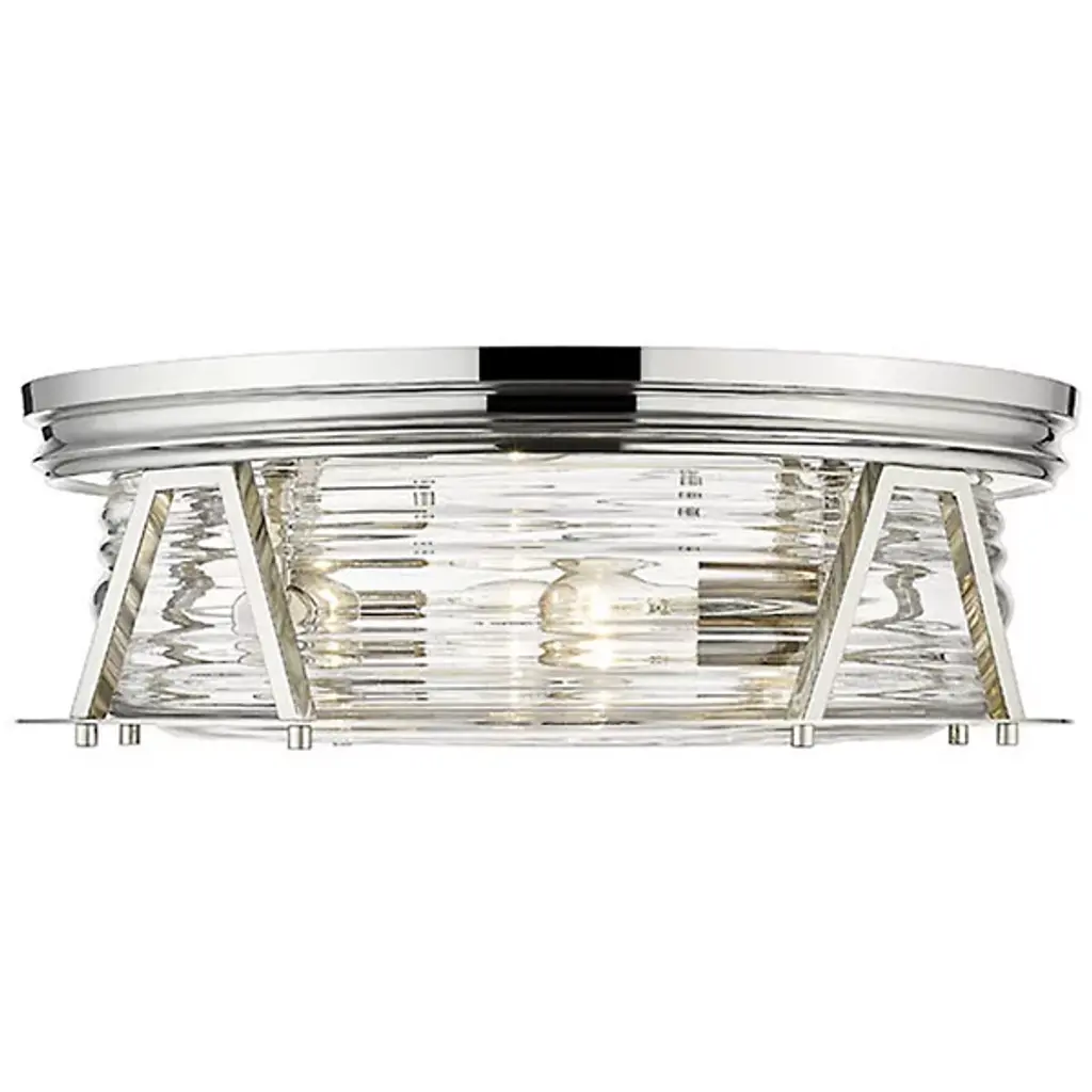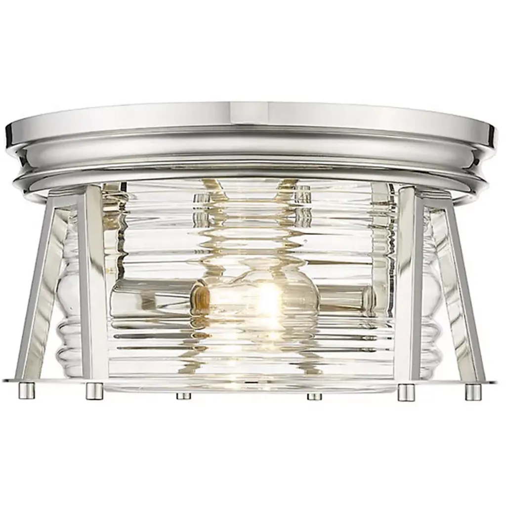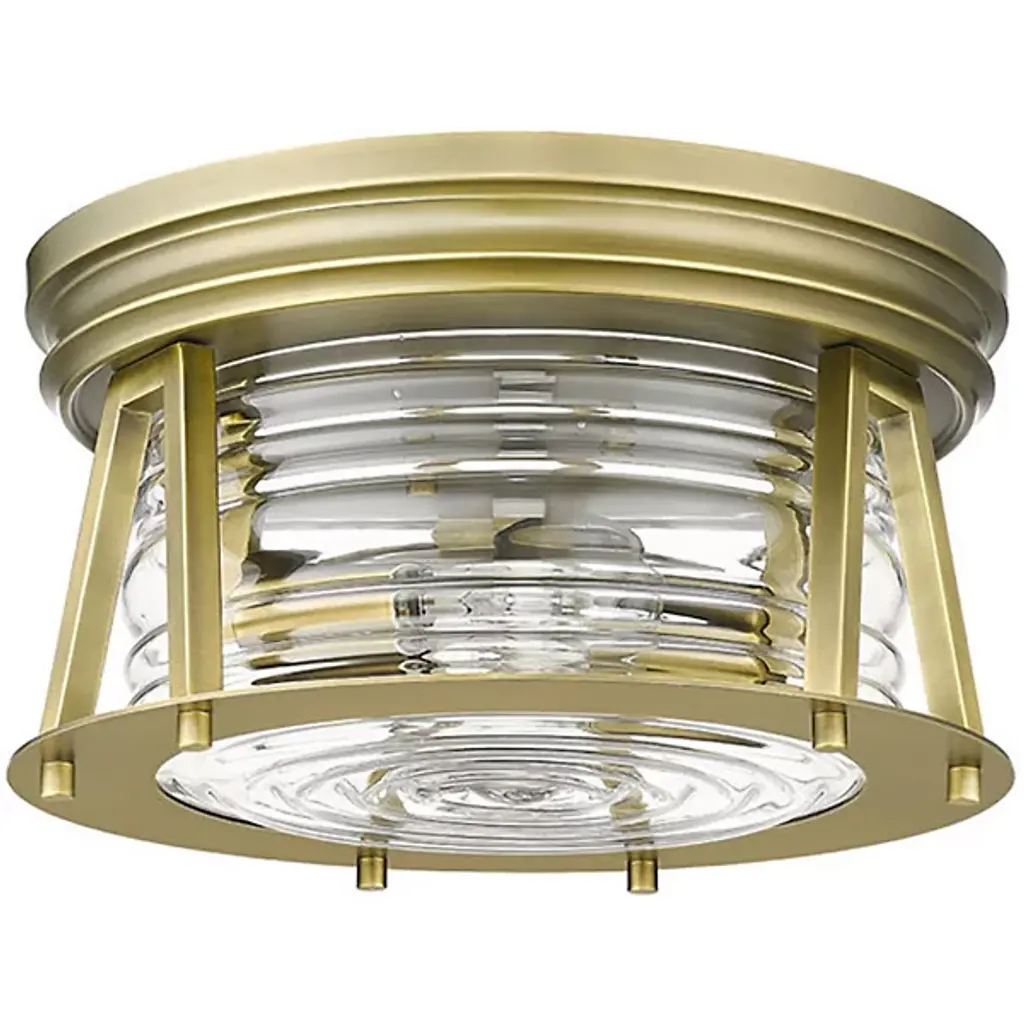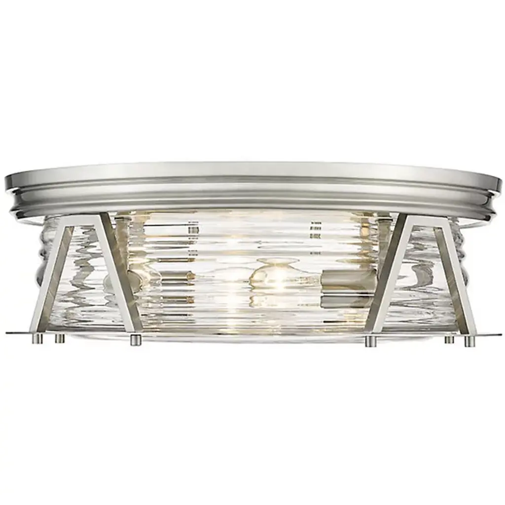 The Hill Flushmoutn from Alder & Ore illuminates your modern space with a touch of historical charm. Drawing inspiration from the nautical heritage of coastal Cape Harbor in North America, this fixture beautifully blends Art Deco elements with a linear concept. Its design features an angled frame and canopy, cradling ribbed clear glass that exudes an aesthetic transitioning seamlessly from industrial to modern to coastal. Revel in the warm and inviting ambiance it provides to your space, combining history with contemporary style.