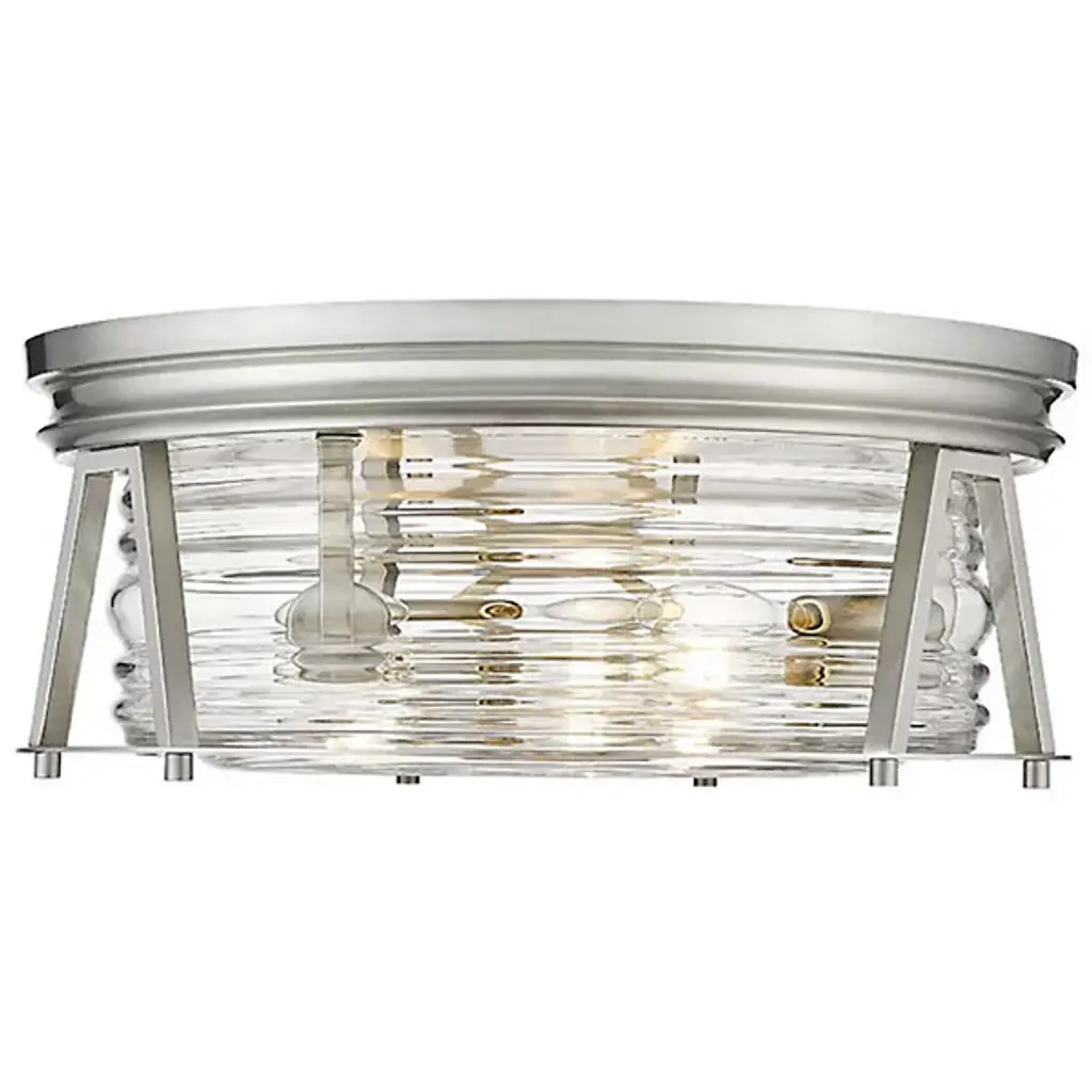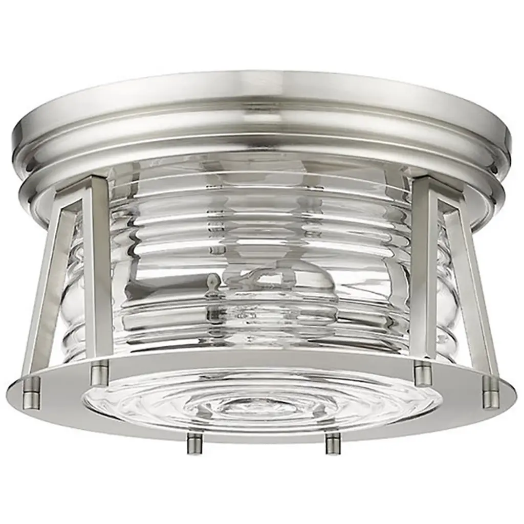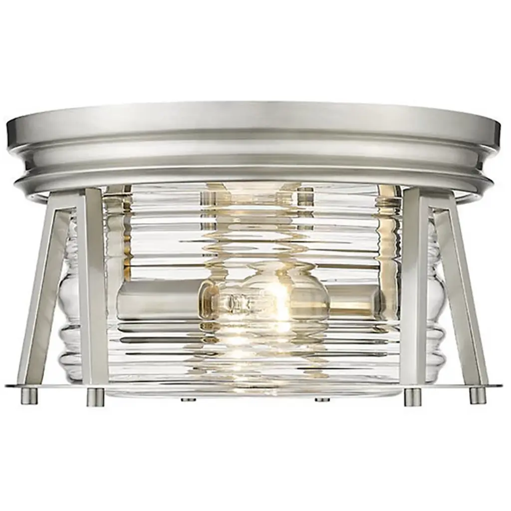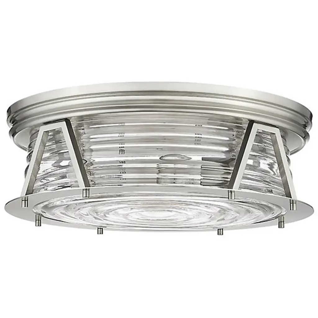 The Hill Flushmoutn from Alder & Ore illuminates your modern space with a touch of historical charm. Drawing inspiration from the nautical heritage of coastal Cape Harbor in North America, this fixture beautifully blends Art Deco elements with a linear concept. Its design features an angled frame and canopy, cradling ribbed clear glass that exudes an aesthetic transitioning seamlessly from industrial to modern to coastal. Revel in the warm and inviting ambiance it provides to your space, combining history with contemporary style.