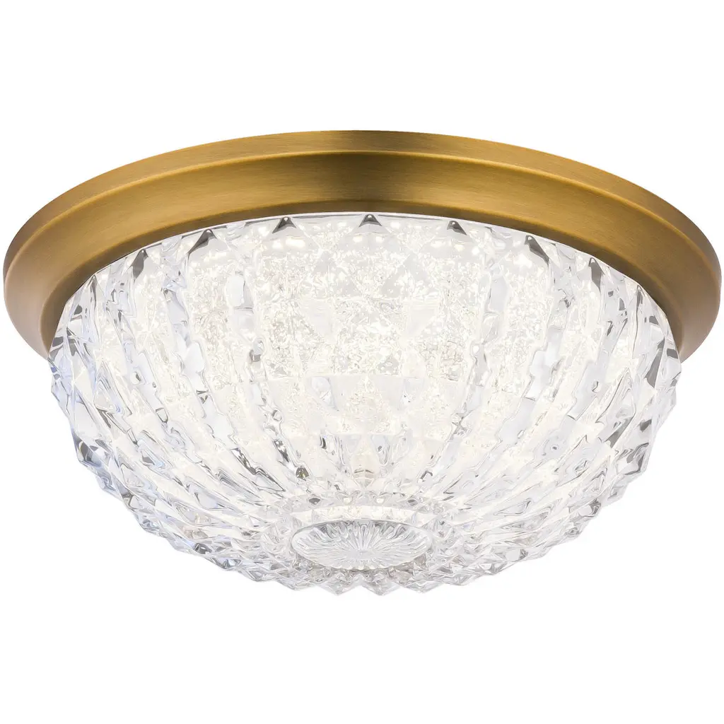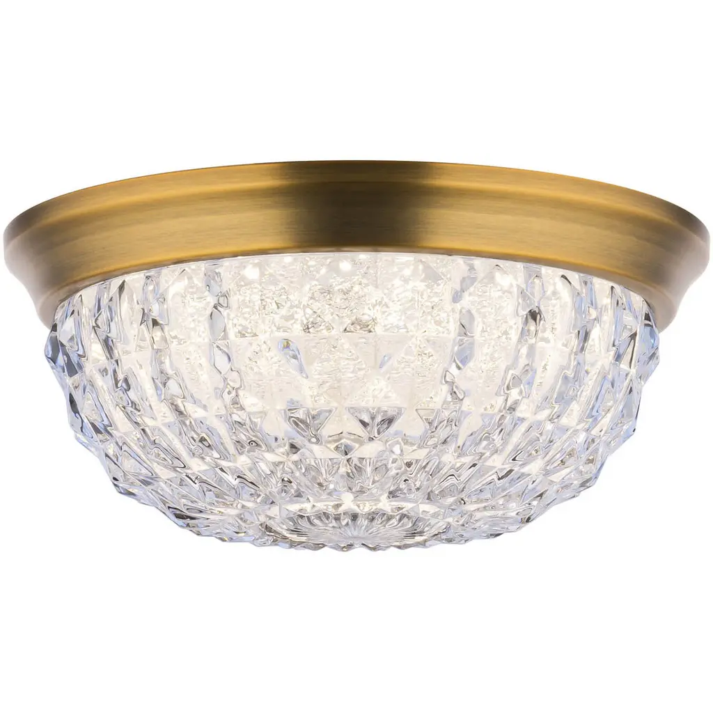 An artistic composition that delivers eye-catching illumination. The Hillam Solitaire LED Flushmount by Visual Comfort Signature, formerly known as Visual Comfort, is a Studio VC design that brings elegance to contemporary and transitional living spaces. Its dome-shaped shade (with a cutout at the bottom) is crafted from faceted clear-cut crystal for a refined touch, while a sleek, metal canopy mount imparts a traditional flair. Housed within this bejeweled shade is an integrated LED light source that produces a warm, refractive light that shimmers in the surrounding space.