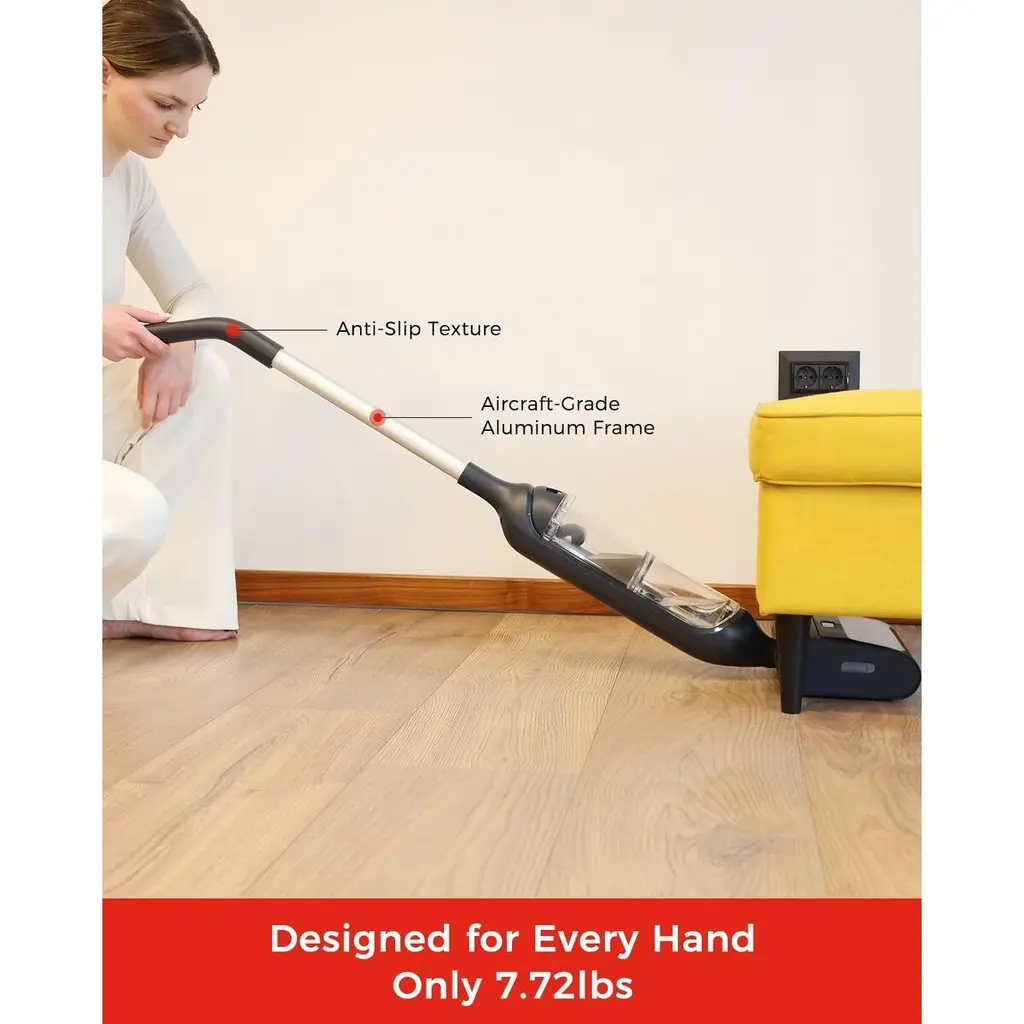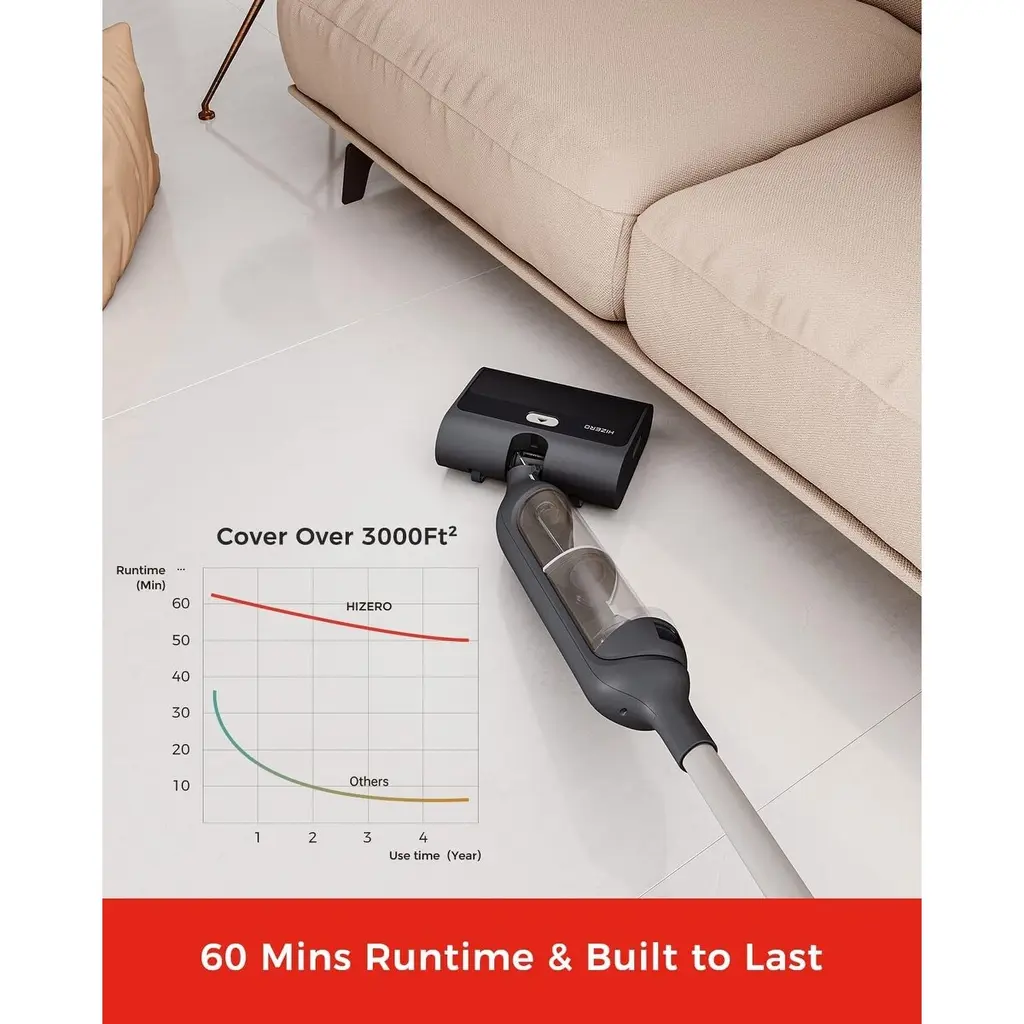 UltimateClean Technology: Innovative polymer roller captures dirt, liquids, and hair without suction, preventing dust recirculation and reducing noise levels to below 60 dB. Dock & Charge in One Smart Step: The Hizero F300 comes with an integrated charging dock that doubles as a self-cleaning station. Simply place the unit on the base after use for effortless charging and hygienic roller flushing. Ultra‑Light, Slim & Agile Design: At just 3.5 kg with a 250 mm slim head, 160° swivel and 8 mm edge‑reach, the F300 glides effortlessly under furniture and along walls—giving you total control and spotless edges with minimal effort