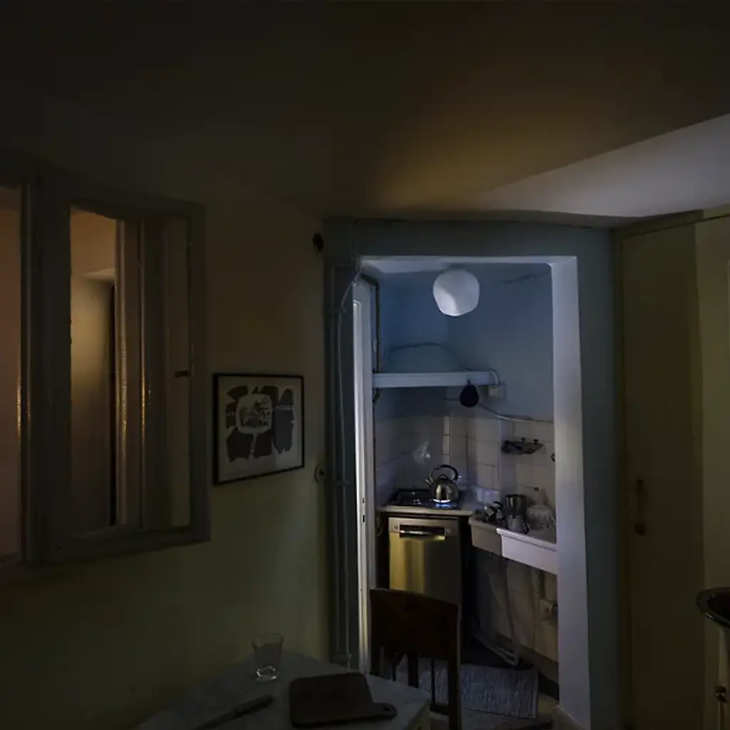 The Hoba Flushmount from Foscarini adds eloquent appeal to interior spaces, transforming them with vibrant warmth. A naturally themed design by Ludovica and Roberto Palomba, it is intended to echo a stone falling from the sky. A rounded canopy suspends the fixture from above, sending down a slim cable to strong lamping inside a blown-glass diffuser. The opaque surface obscures bright glare, while the organic lines of the glass shape the light within differently, casting a mix of warm ambiance enhanced by shadows out in all directions.