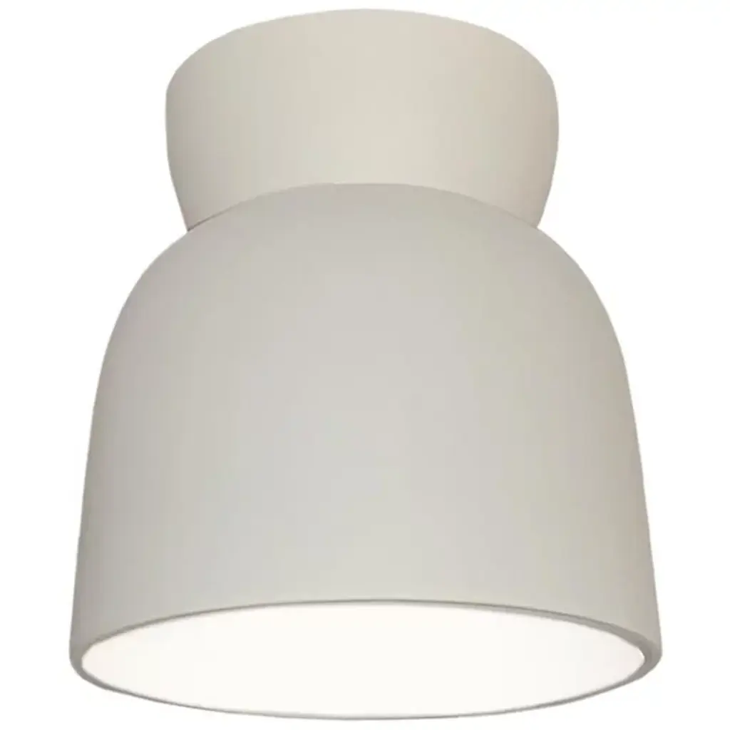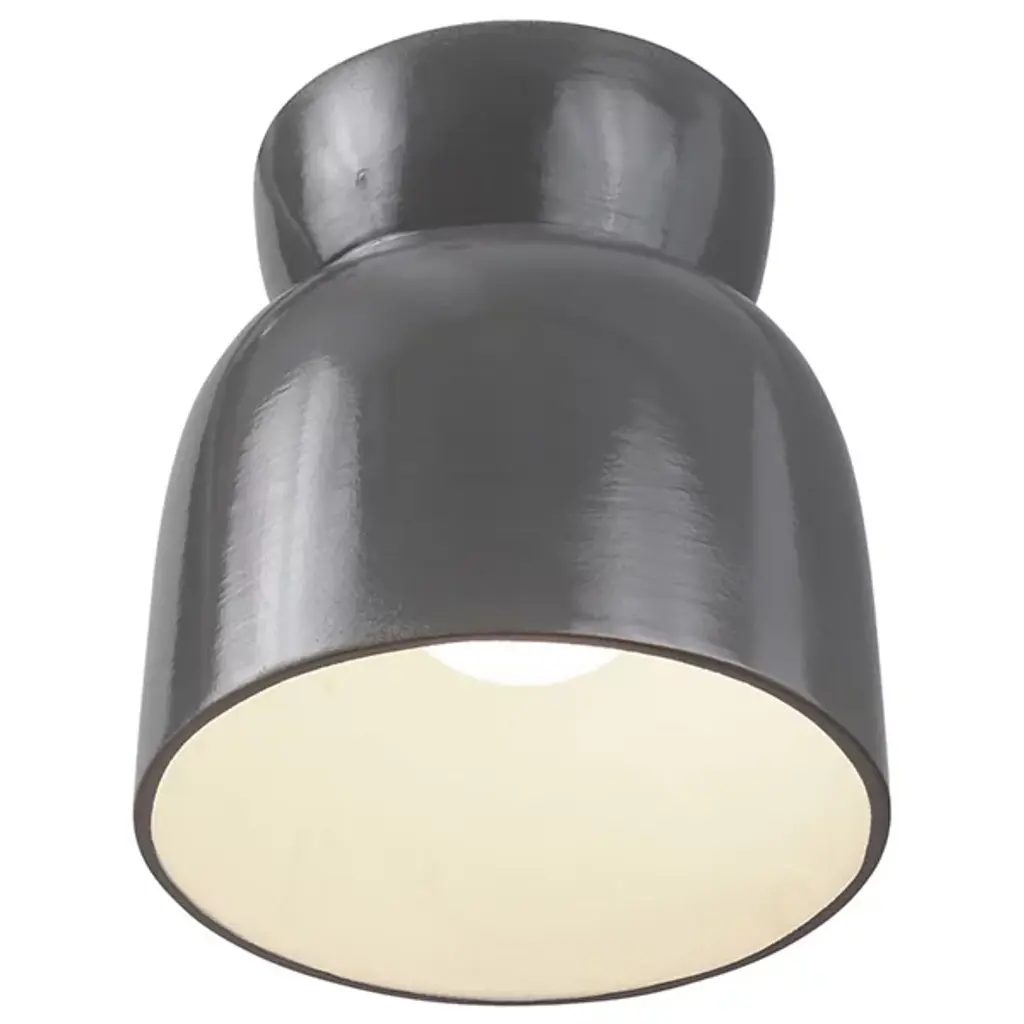 A fine form for sophisticated spaces. The Hourglass Flushmount by Justice Design Group has a distinctive, graphic shape inspired by that of, you guessed it, an hourglass. It is handcrafted entirely out of Ceramic, with an exterior color to either make it stand out or blend in with its surroundings. Use this modern flushmount to brighten up the look of a kitchen, bedroom or any other modern interior with lower ceilings.