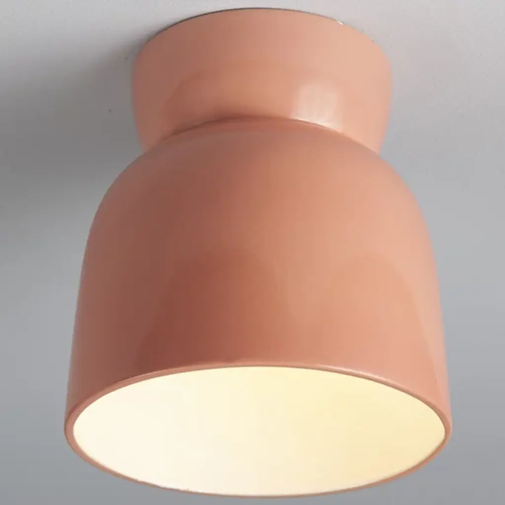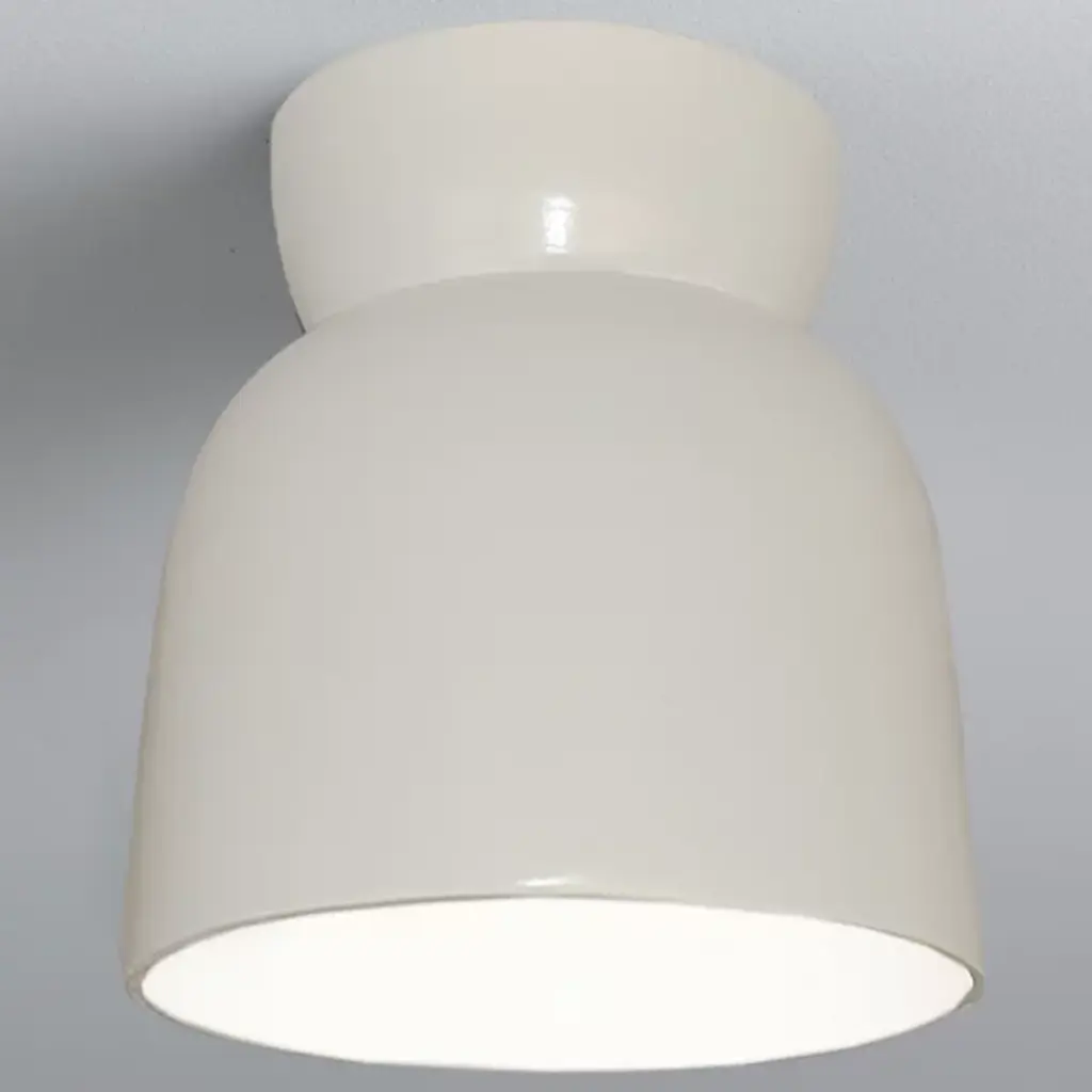 A fine form for sophisticated spaces. The Hourglass Flushmount by Justice Design Group has a distinctive, graphic shape inspired by that of, you guessed it, an hourglass. It is handcrafted entirely out of Ceramic, with an exterior color to either make it stand out or blend in with its surroundings. Use this modern flushmount to brighten up the look of a kitchen, bedroom or any other modern interior with lower ceilings.