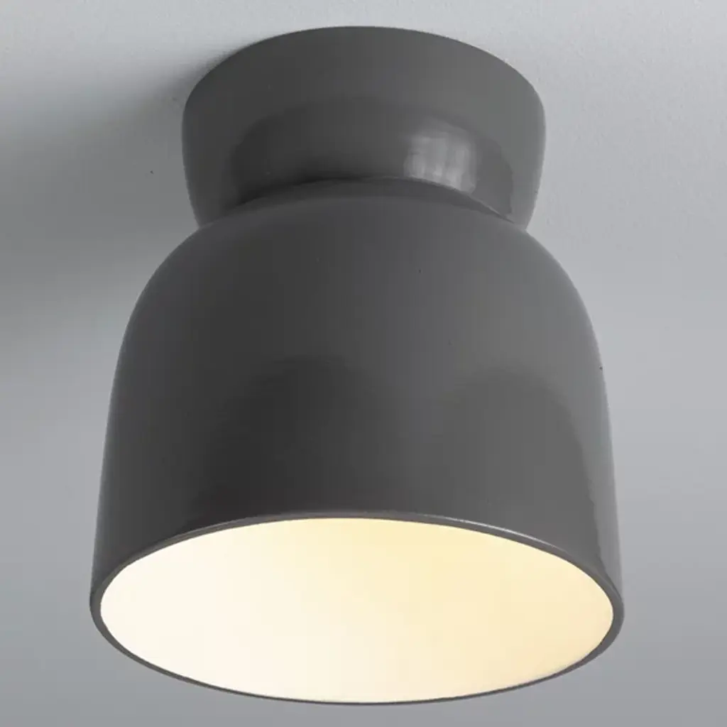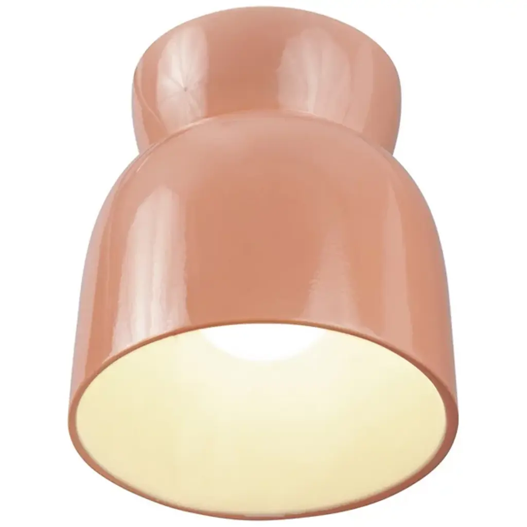 A fine form for sophisticated spaces. The Hourglass Flushmount by Justice Design Group has a distinctive, graphic shape inspired by that of, you guessed it, an hourglass. It is handcrafted entirely out of Ceramic, with an exterior color to either make it stand out or blend in with its surroundings. Use this modern flushmount to brighten up the look of a kitchen, bedroom or any other modern interior with lower ceilings.
