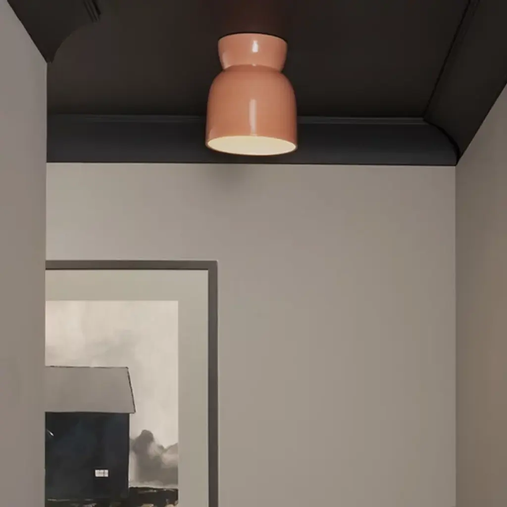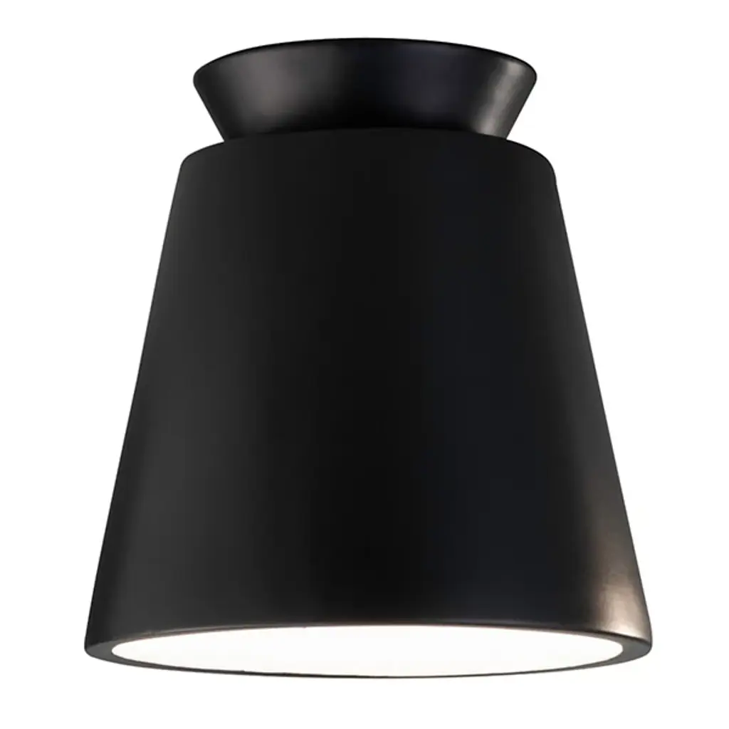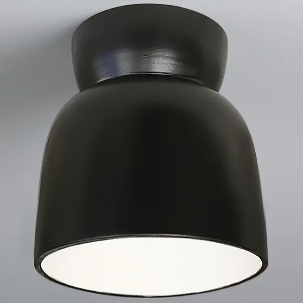 A fine form for sophisticated spaces. The Hourglass Flushmount by Justice Design Group has a distinctive, graphic shape inspired by that of, you guessed it, an hourglass. It is handcrafted entirely out of Ceramic, with an exterior color to either make it stand out or blend in with its surroundings. Use this modern flushmount to brighten up the look of a kitchen, bedroom or any other modern interior with lower ceilings.