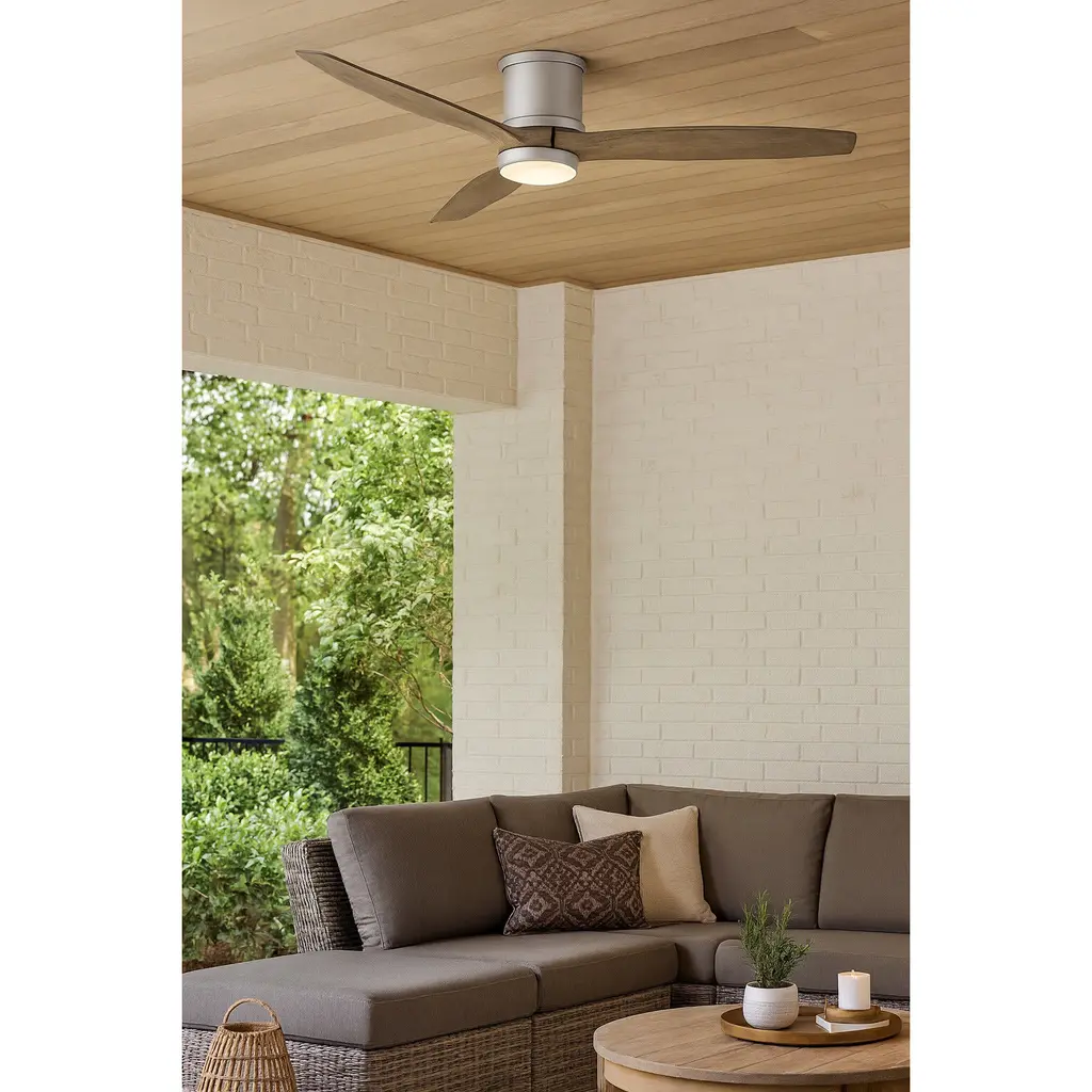 Hover Flush 52 Inch Brushed Nickel With Weathered Wood Blades Fan