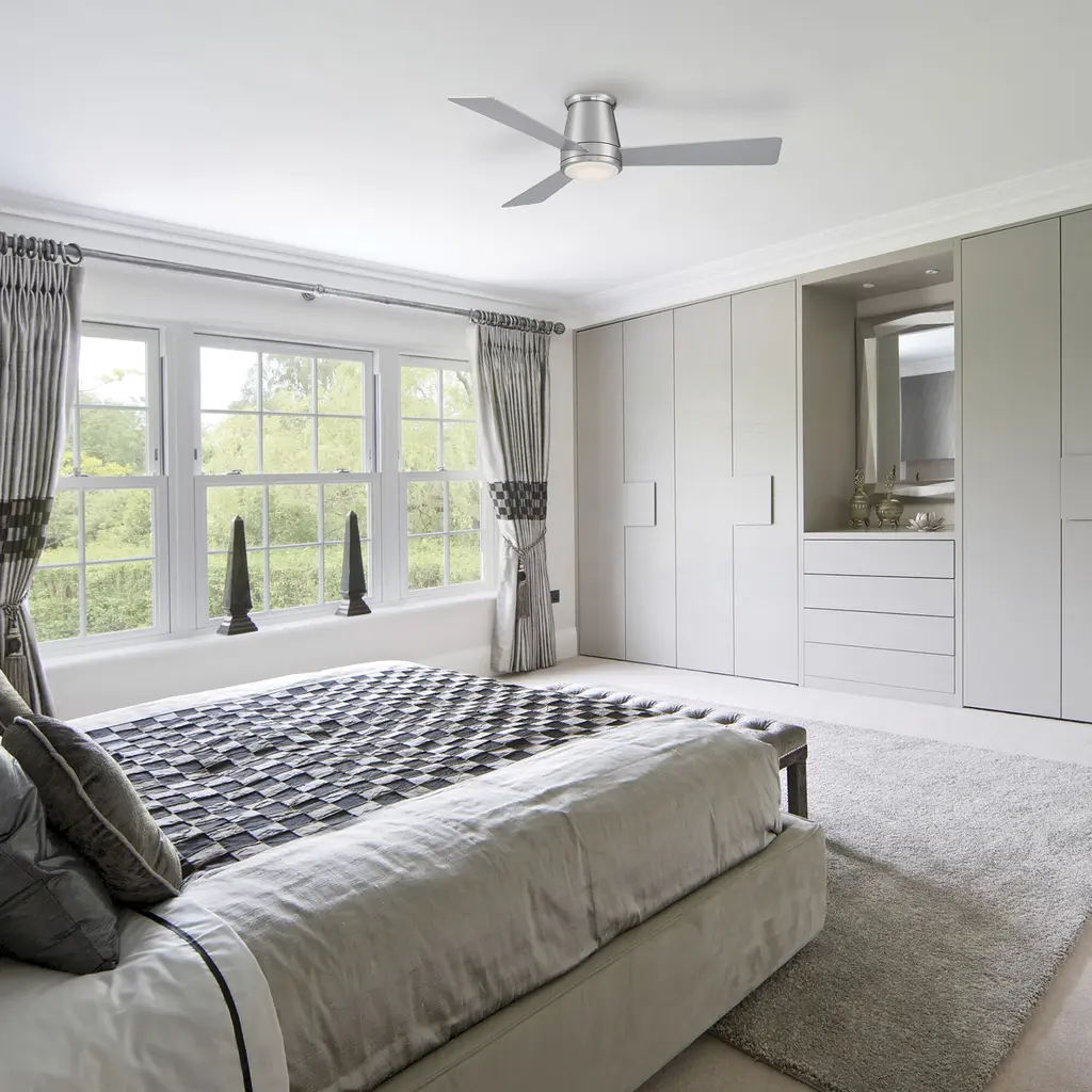 Simple in concept yet discreetly refined – this irresistible smart fan has the whole package. Hug will integrate seamlessly into everyday living and charm you with a tailored look you will be yearning to embrace. Two sizes and three finishes including Matte Black, Matte White and Brushed Nickel. A convenient remote control comes included with this model as a well as a whisper-quiet DC motor.