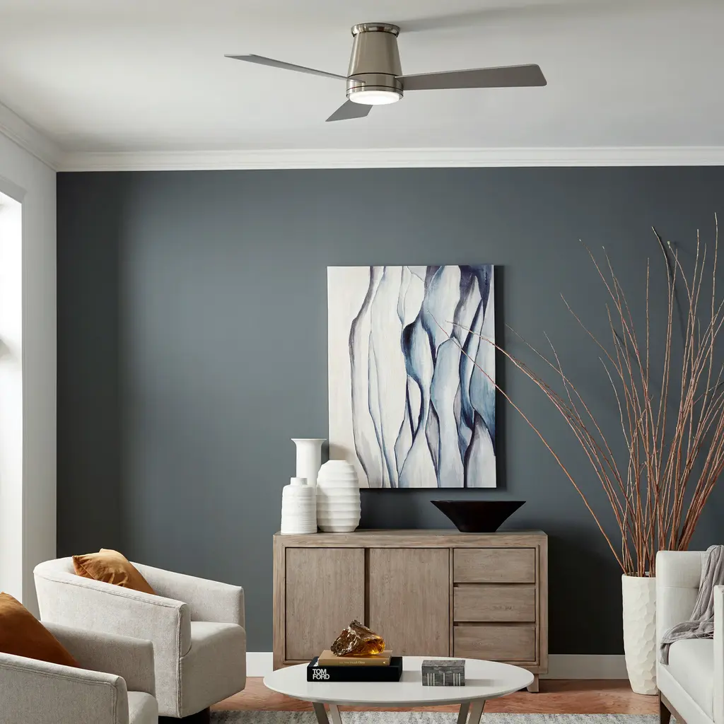 Hug 52 Inch Brushed Nickel Flush Mount Ceiling Fans, Smart Fan