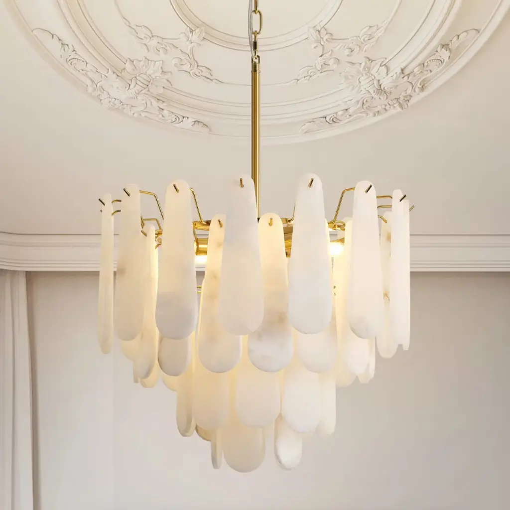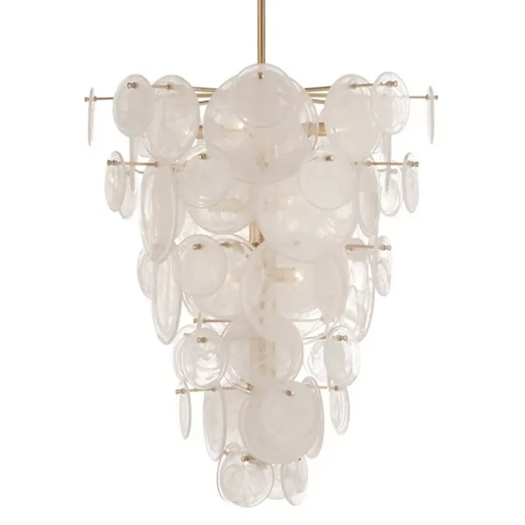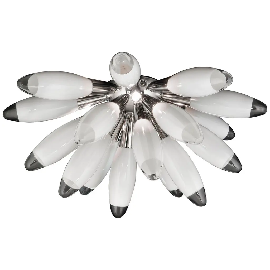 Amazing Italian murano glass chandelier made by clear / white "lattimo" murano glass petals.By Veneziani Arte.Frame available chrome or gold 24-karatDimensions: H- 21.2 inches (55 cm) height without chain using as a ceiling light or flush mount.Diameter 29 inches (75 cm)Chandelier with customizable chain and canopy 43 inches (110 cm) heightDimension glasses 11.40 inches (29 cm) height, 3.15 inches (8 cm) maximum width.Weight: 57.5 lb (40 kg.)Nine E 27 light bulbs suitable for the American electrical system. Price \ item. This light fixture can be disassembled and the glasses individually wrapped for easy transport. We will deliver professionally packed in a wooden case.??