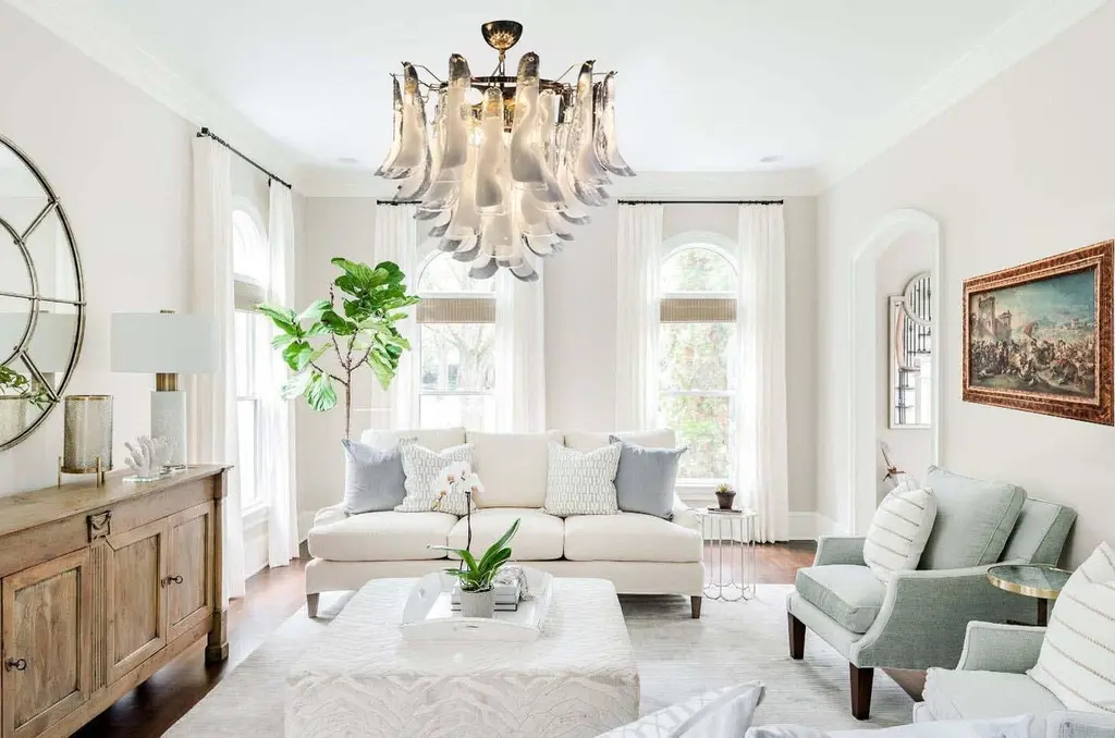 Huge White Tulip Petals Murano Chandelier Or Ceiling Light