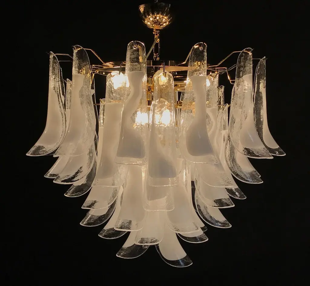 Huge White Tulip Petals Murano Chandelier Or Ceiling Light